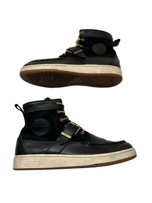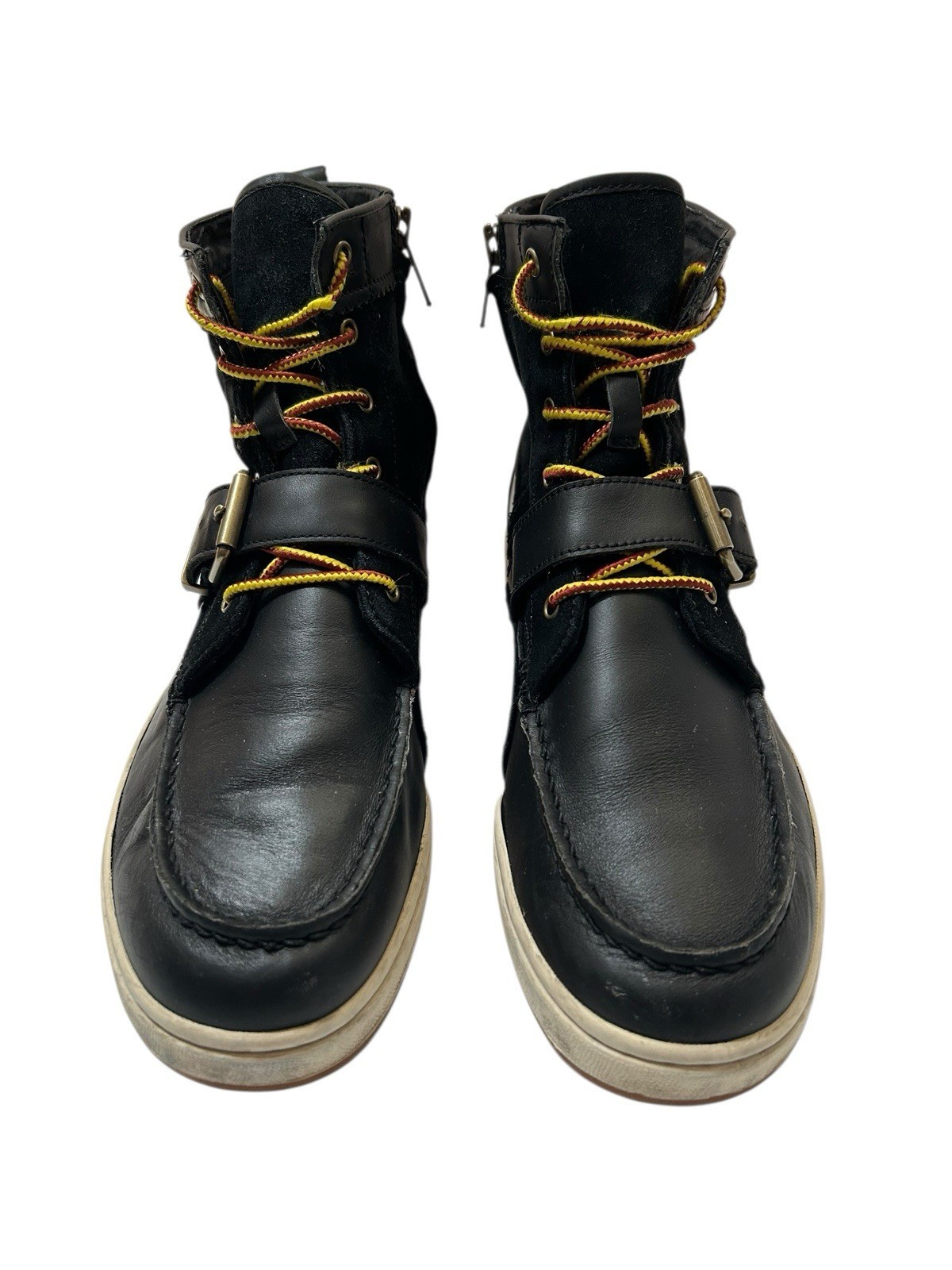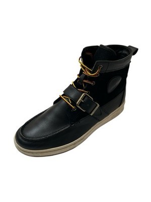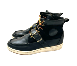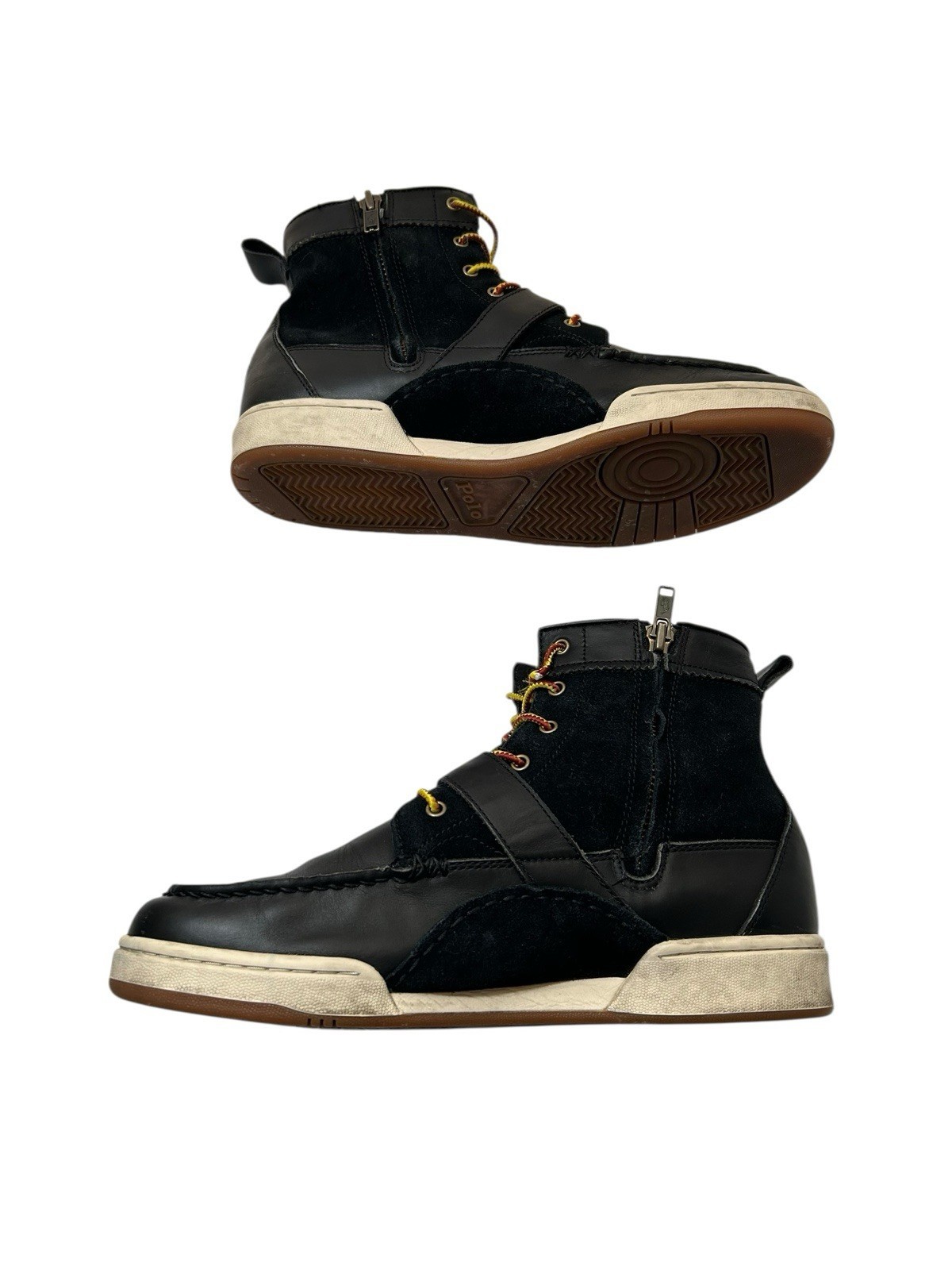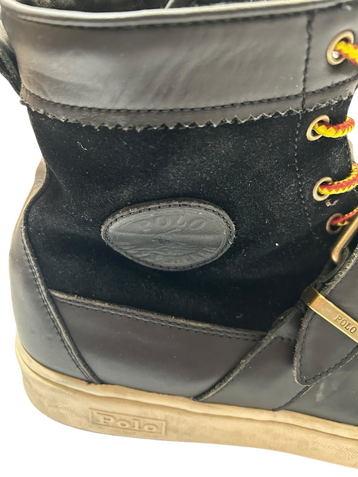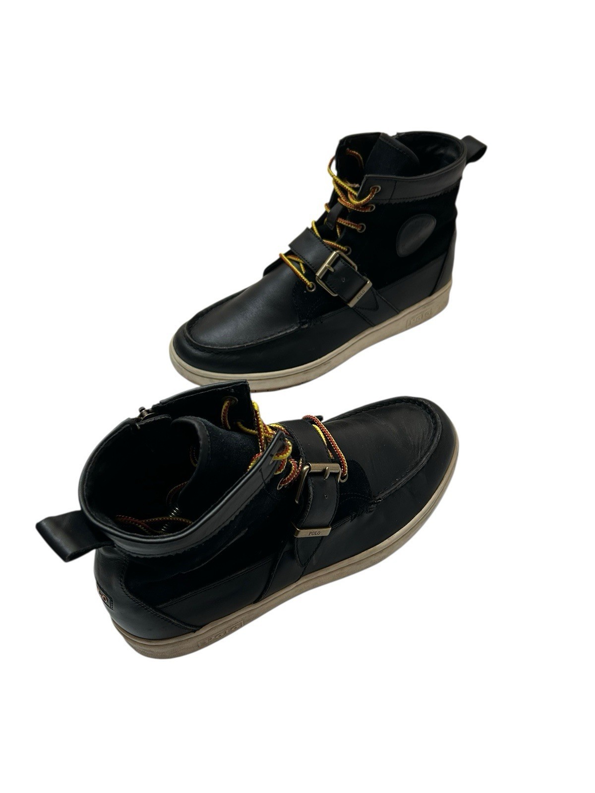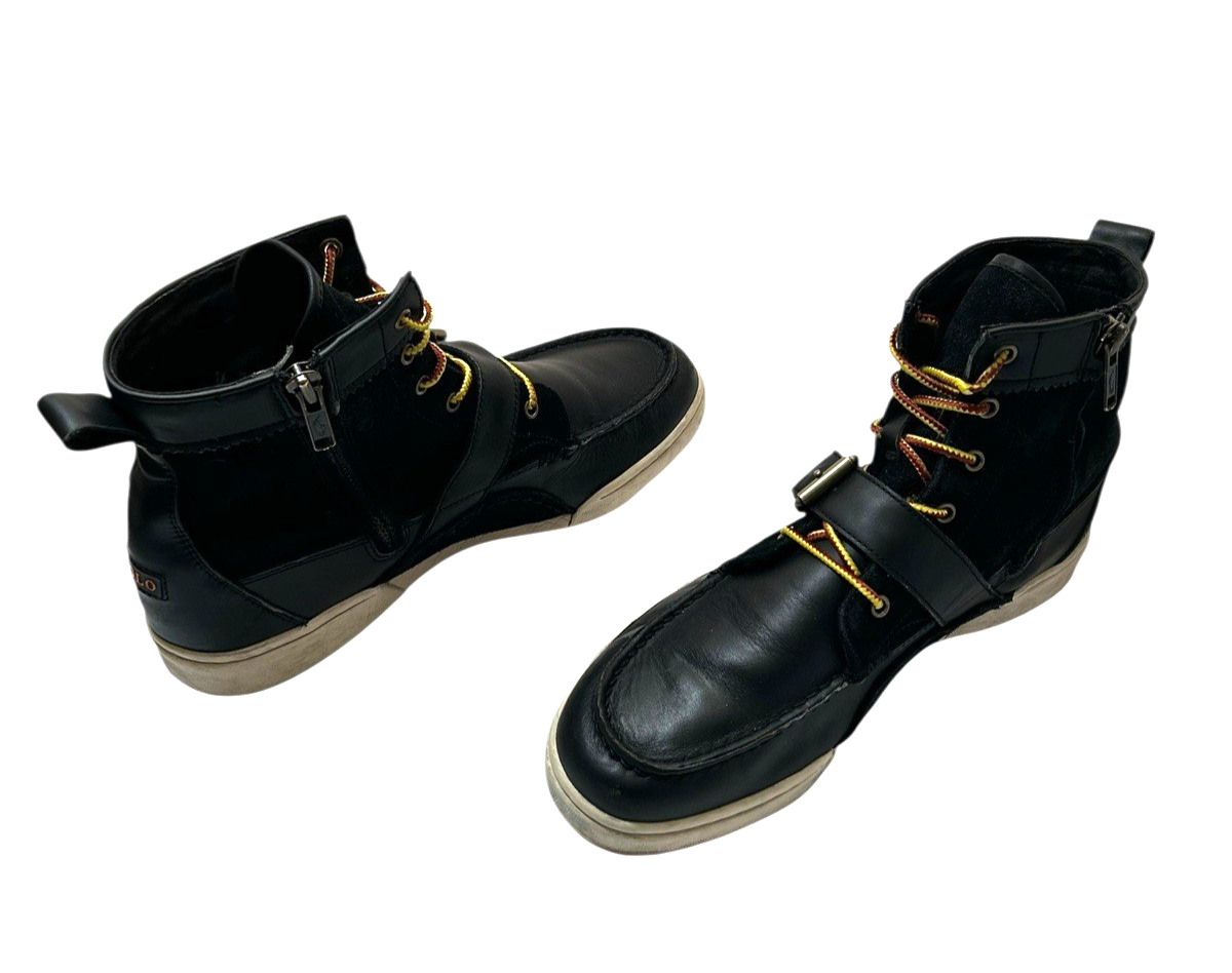 POLO RALPH LAUREN Leather Men Ranger Sneaker Boot Blk 10.5 Buckle Laces Mid Top