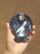 Polished Orthoceras Fossil Bowl Devonian Period Morocco Handmade Stone Dish