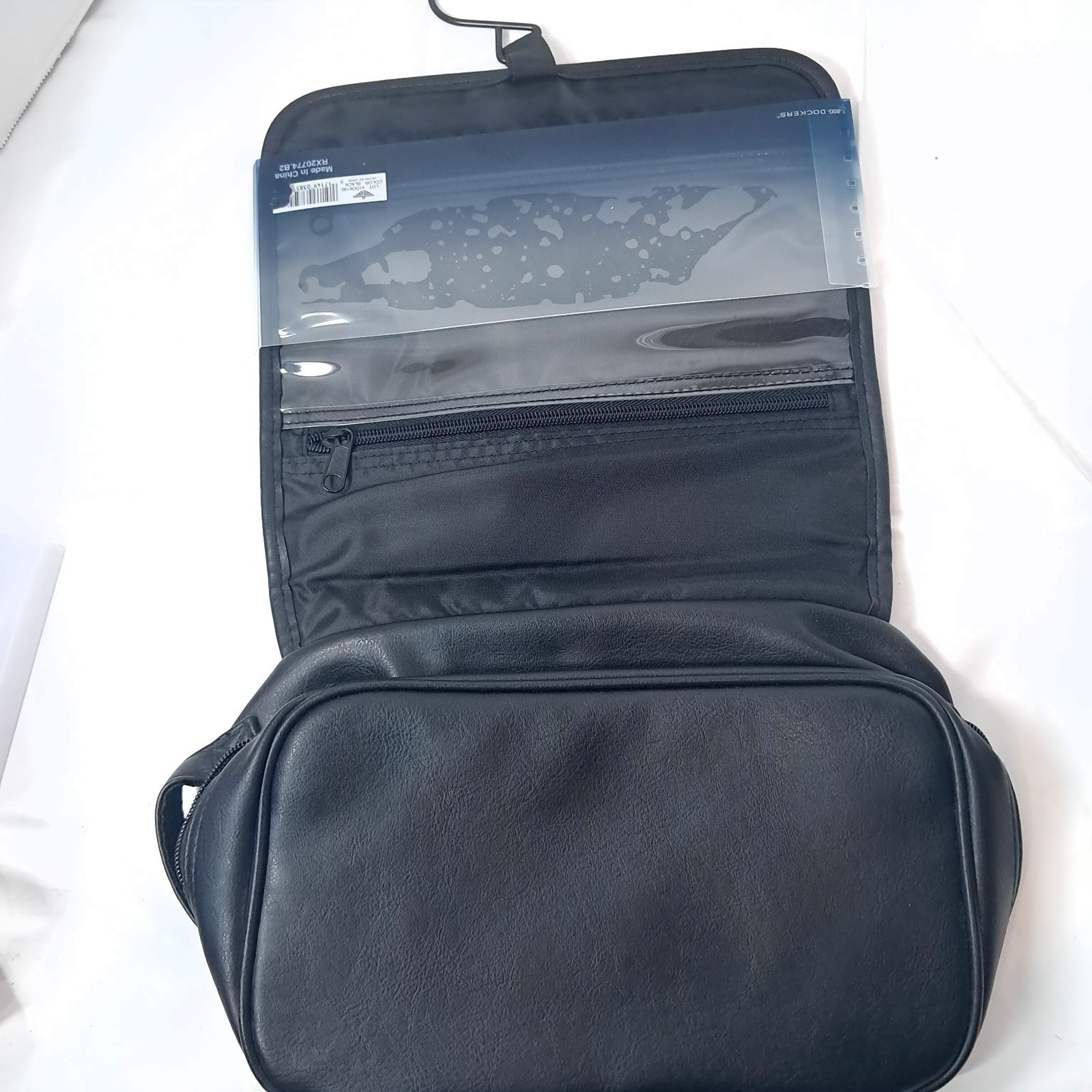 New Dockers Hanging Travel kit Black faux leather vinyl tri-fold Toiletry case