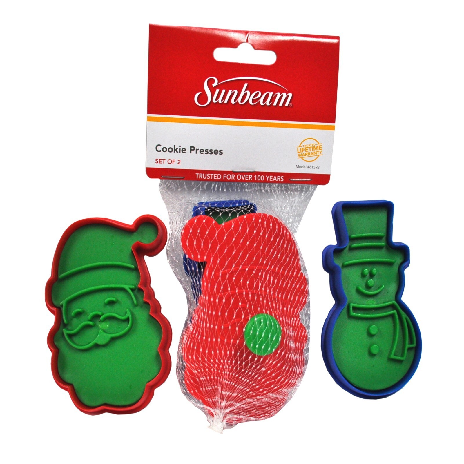 Spring loaded press makes a Santa and Snowman shaped cookie.