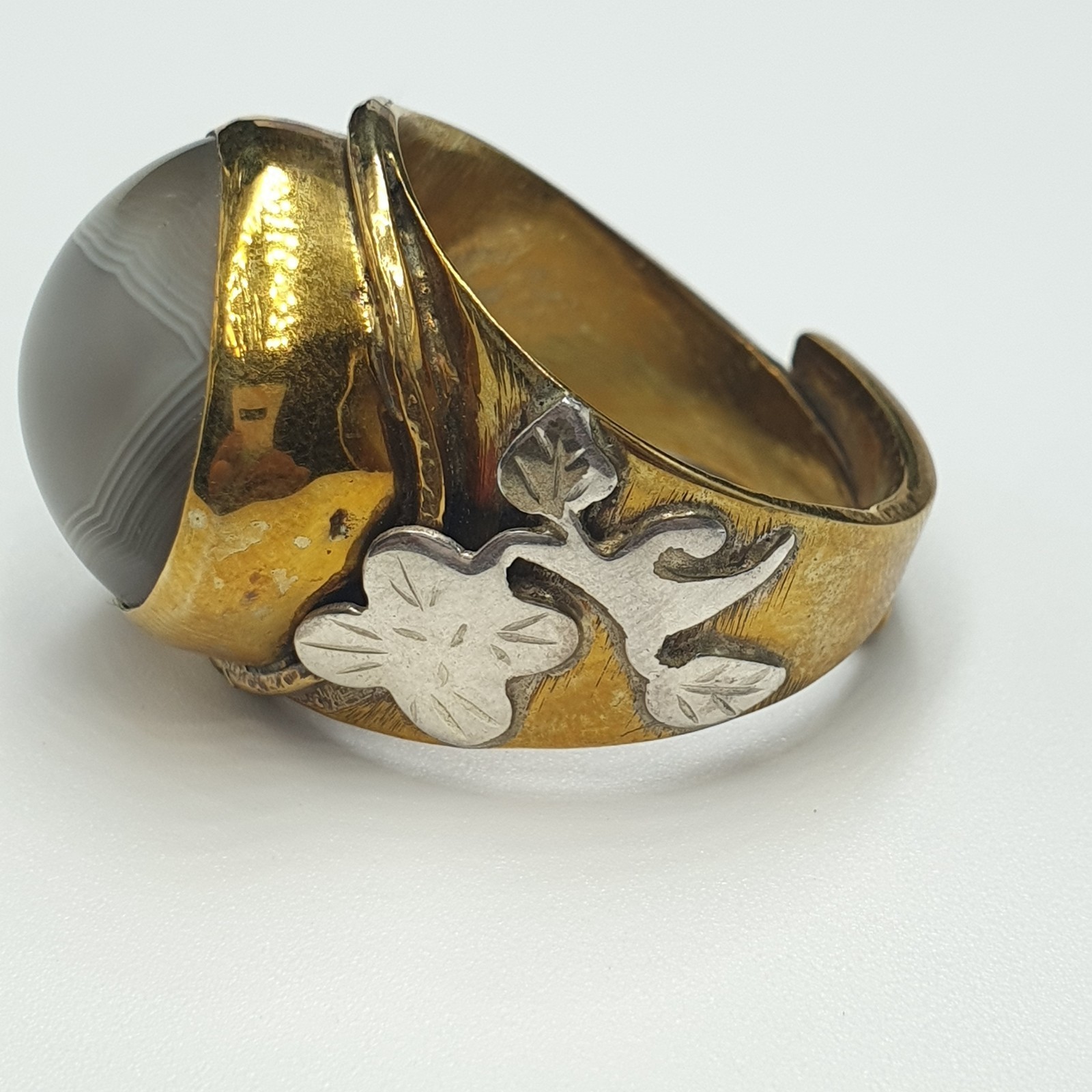 Silber Intarsien Messing Ring mit Tibet Auge Achat Mittelstein vergoldet