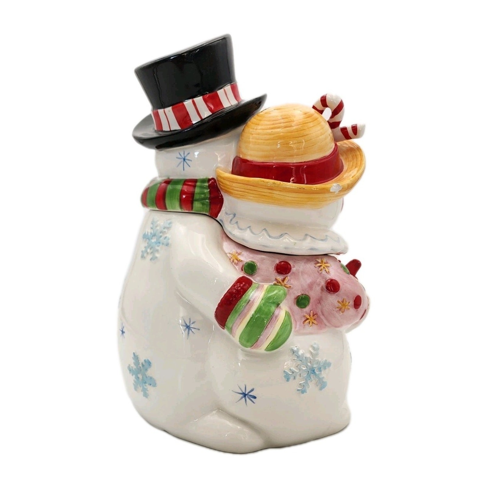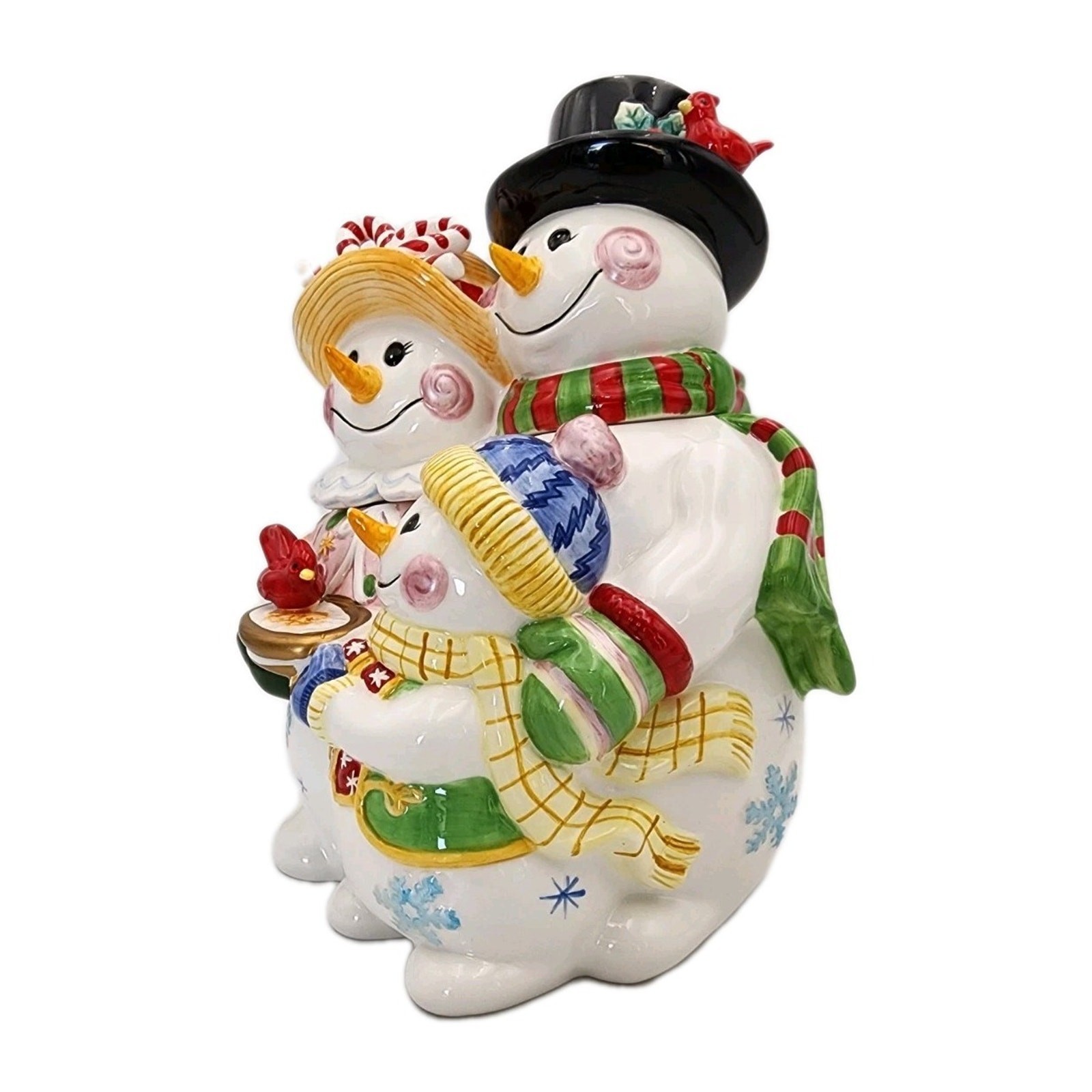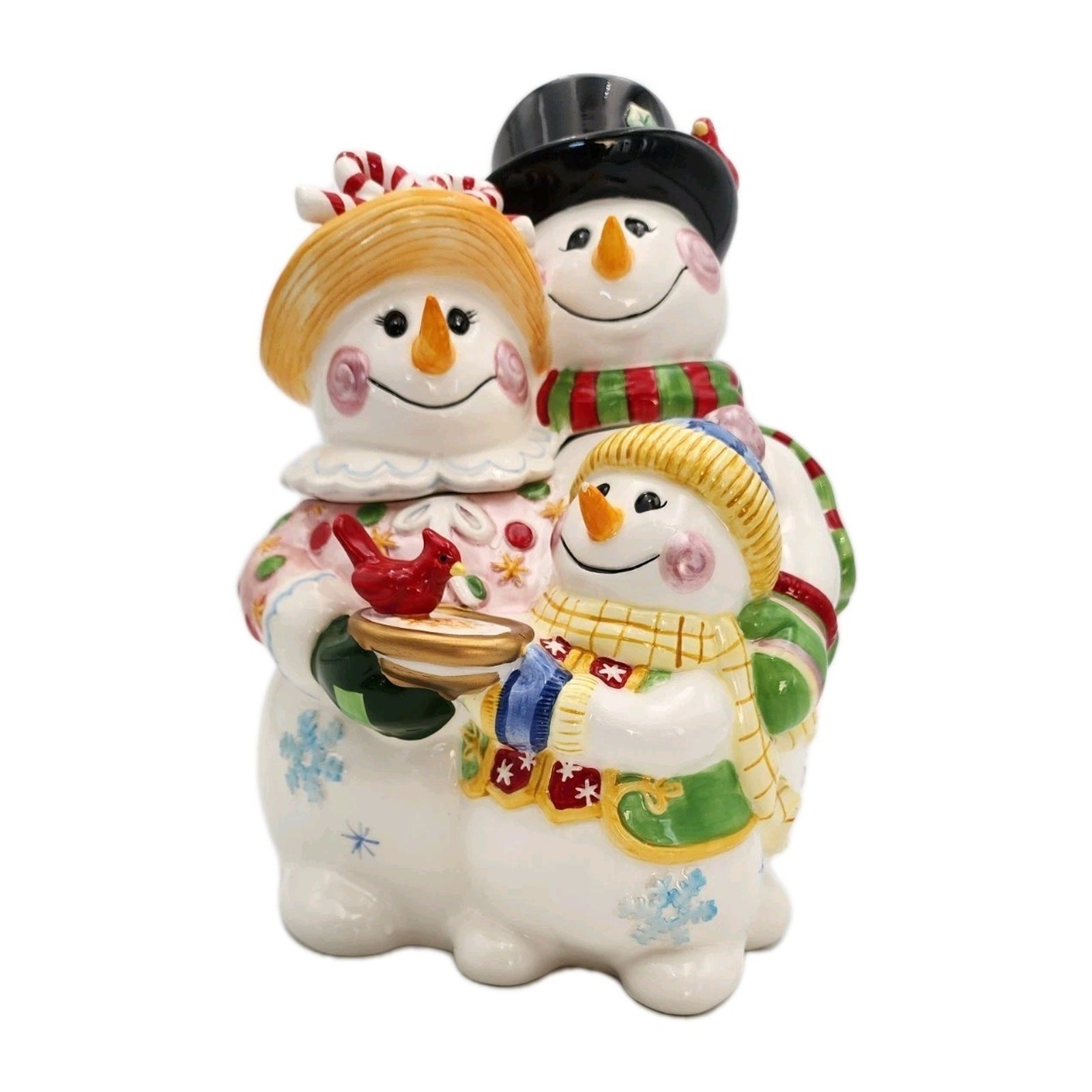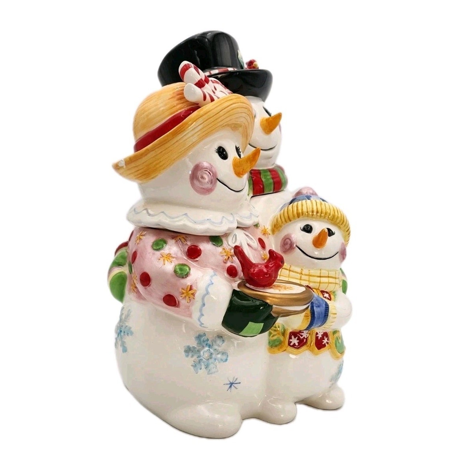 Vtg Fitz & Floyd FROSTY FRIENDS 12" Tall Cookie Jar Christmas Ships Fast