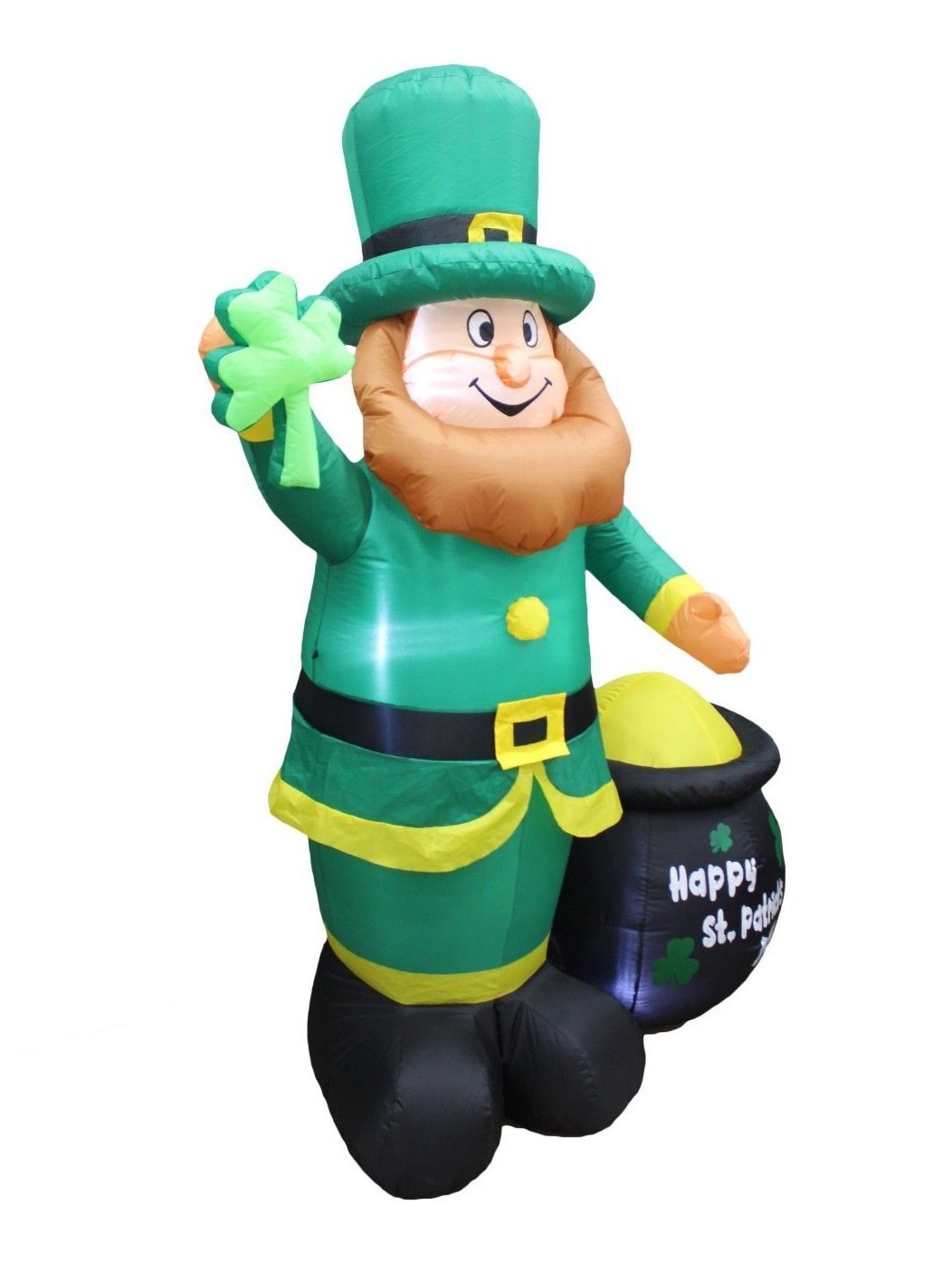 6 Foot Saint Patrick's Day Inflatable Leprechaun Shamrock Pot Of Gold Decoration