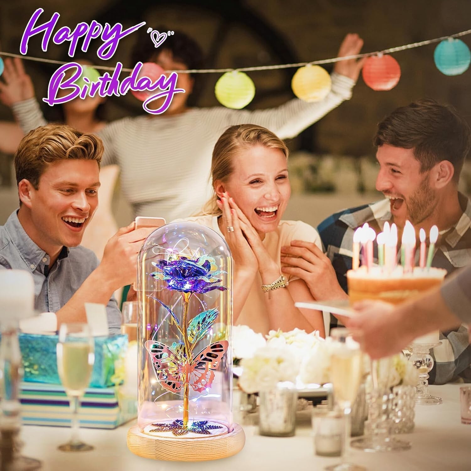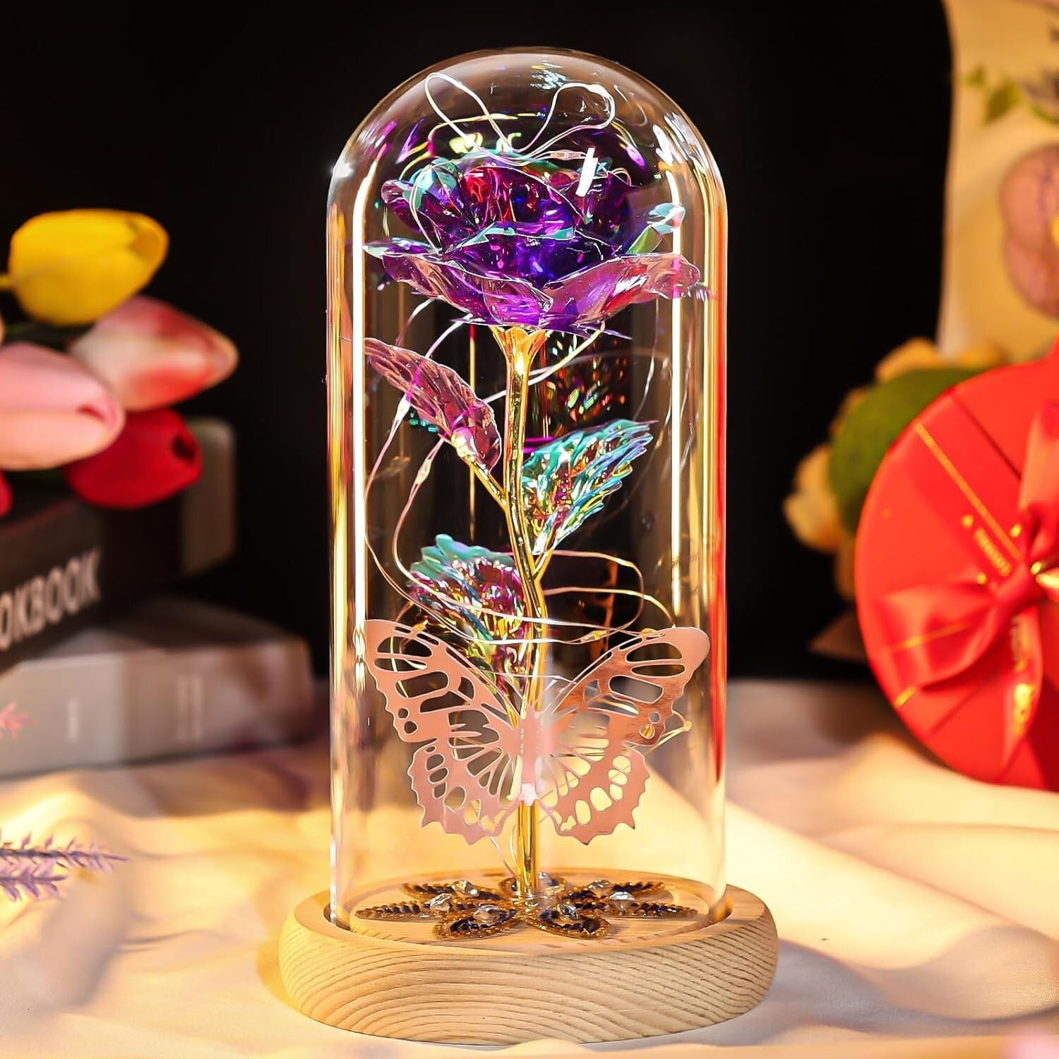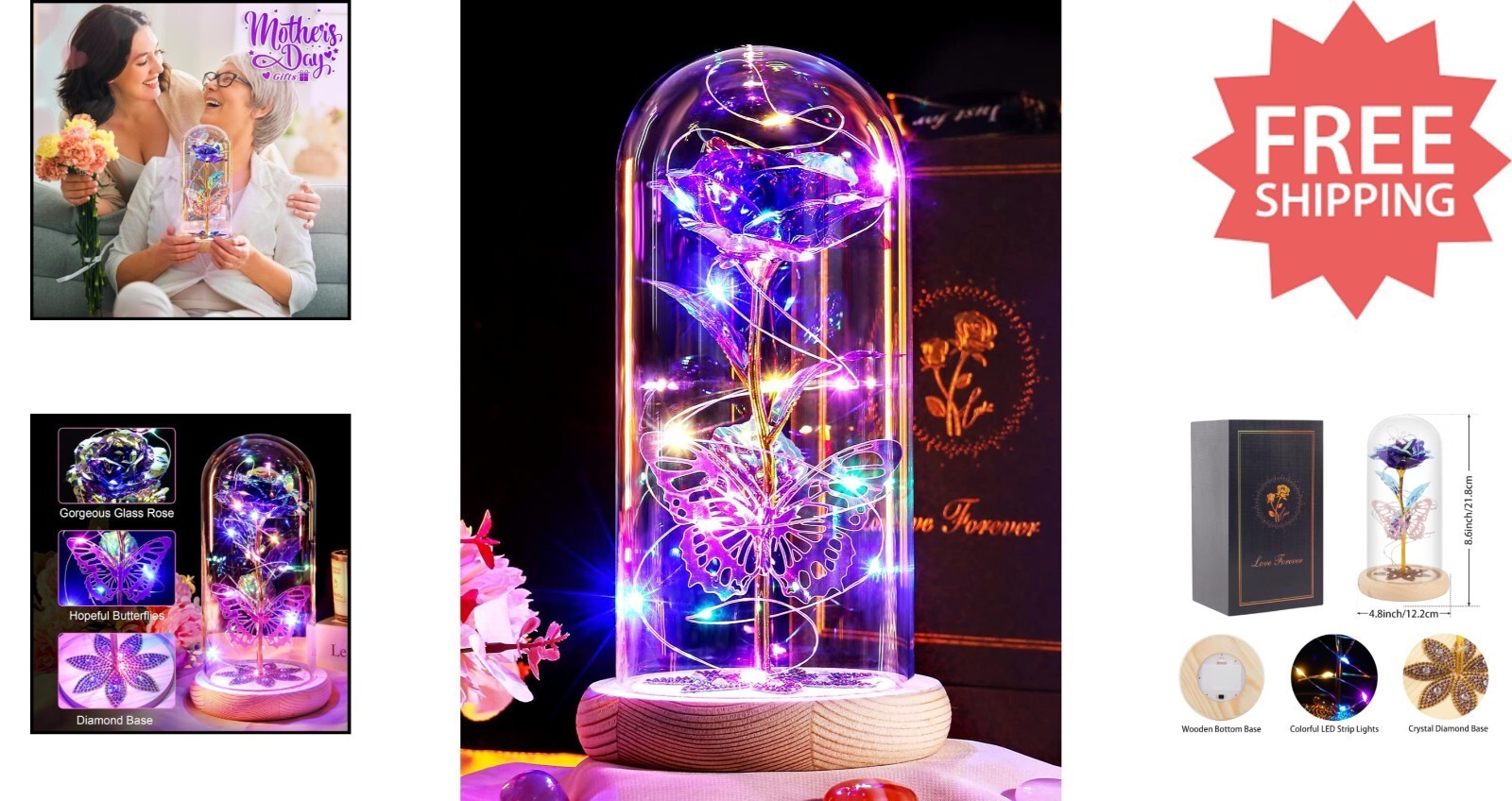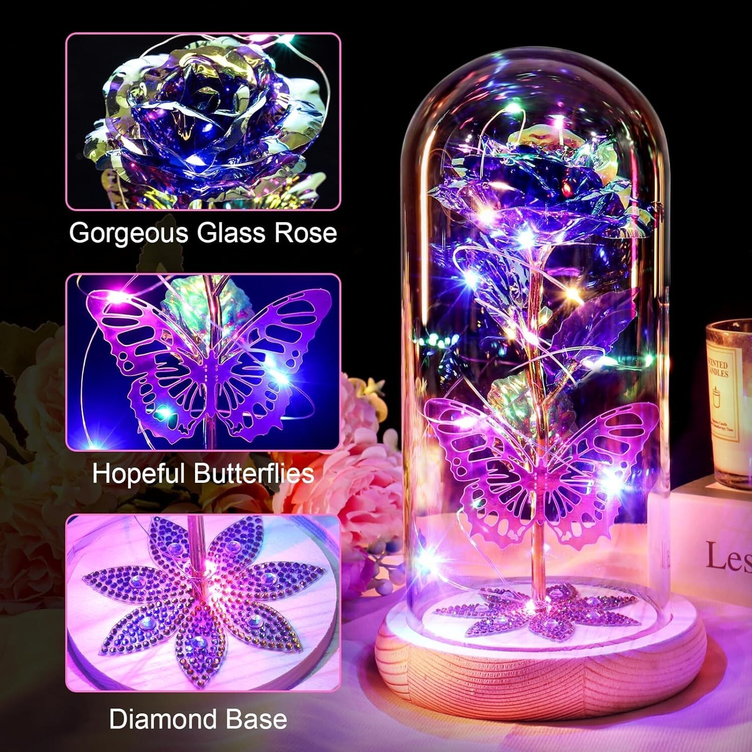 The Beferr Glass Rose, adorned with delicate butterfly decorations and crafted from artificial flowers, symbolizes freedom, hope, and grace?ideal for expressing heartfelt sentiments on Mother?s Day or any special occasion.