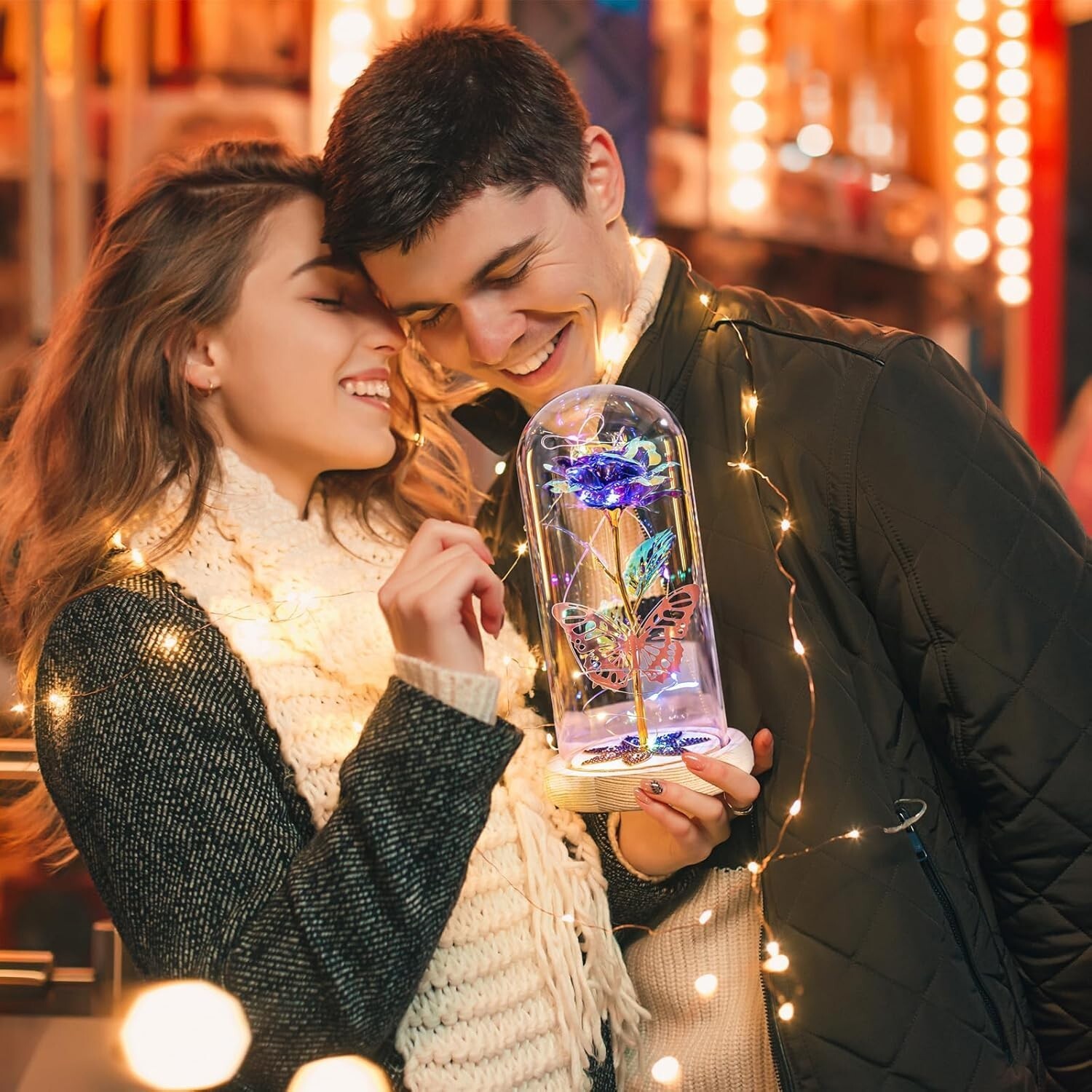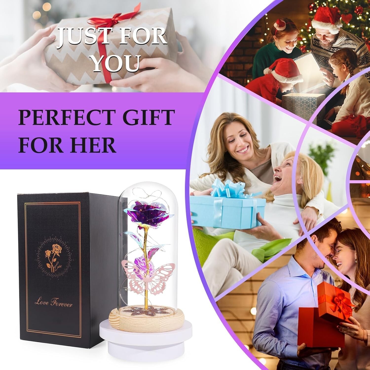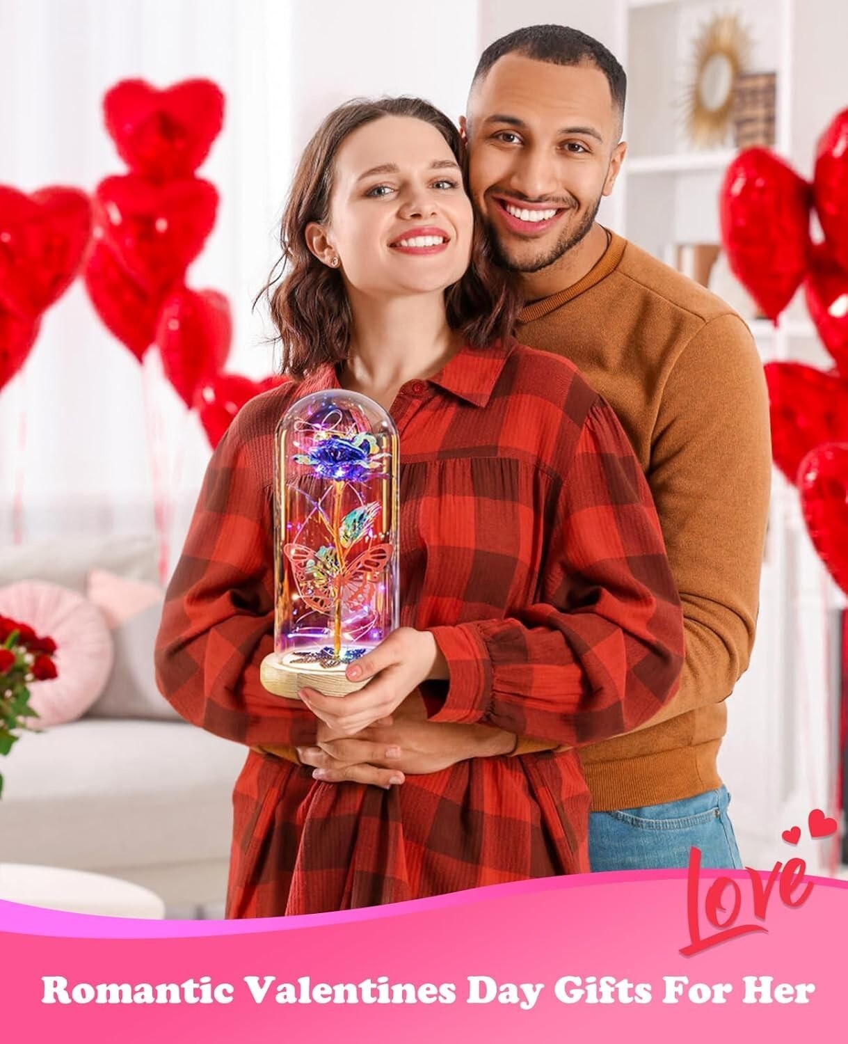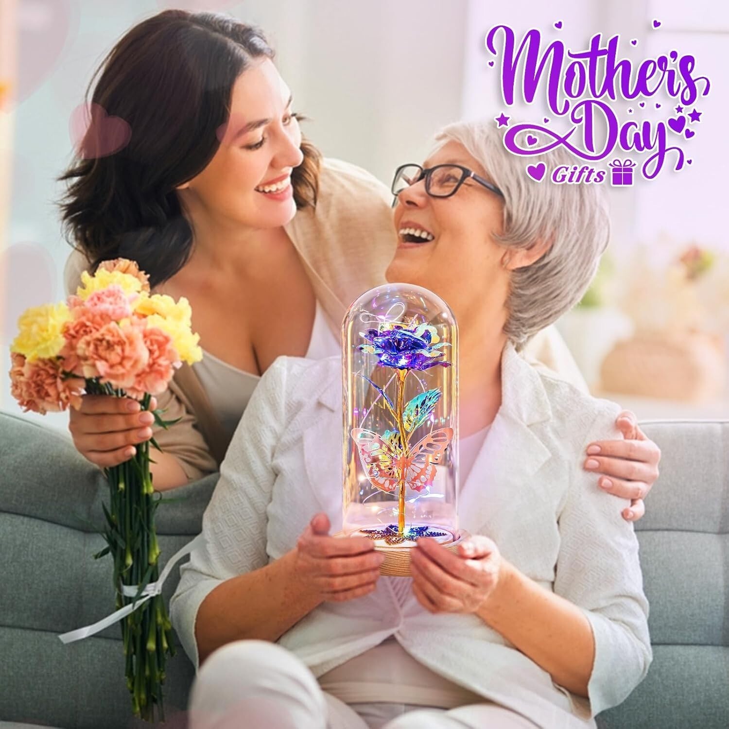 The Beferr Glass Rose, adorned with delicate butterfly decorations and crafted from artificial flowers, symbolizes freedom, hope, and grace?ideal for expressing heartfelt sentiments on Mother?s Day or any special occasion.