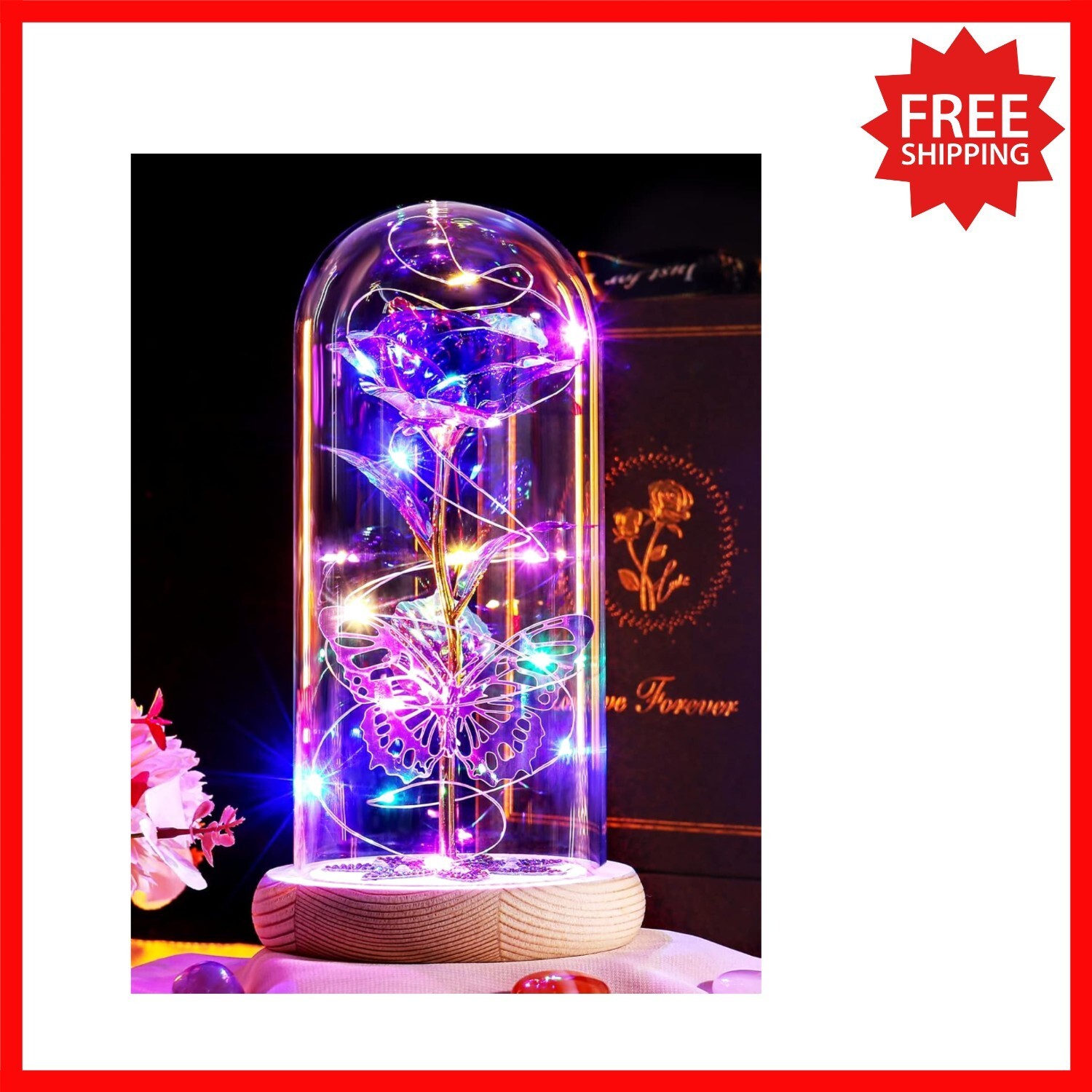 Discover the enchanting Galaxy Glass Rose, a unique and elegant gift designed to celebrate life's special moments. Featuring a crystalline rose blooming from a wooden base encrusted with sparkling crystal diamonds, surrounded by a string of LED lights within a glass dome, it radiates warmth and romance. Perfect for Christmas, birthdays, Valentine?s Day, Mother?s Day, and weddings, this perpetual bloom is a timeless token of love and beauty.