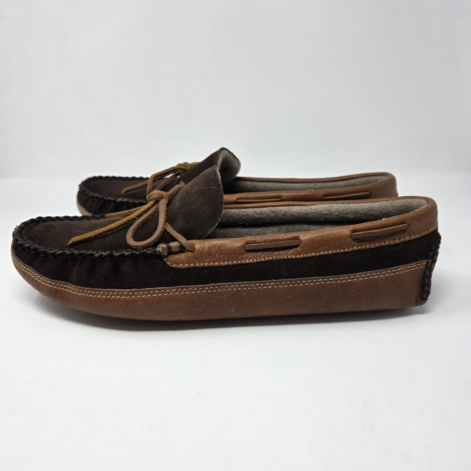 New without box Hush Puppies Brown leather slip on mocassin slippers size 13M.