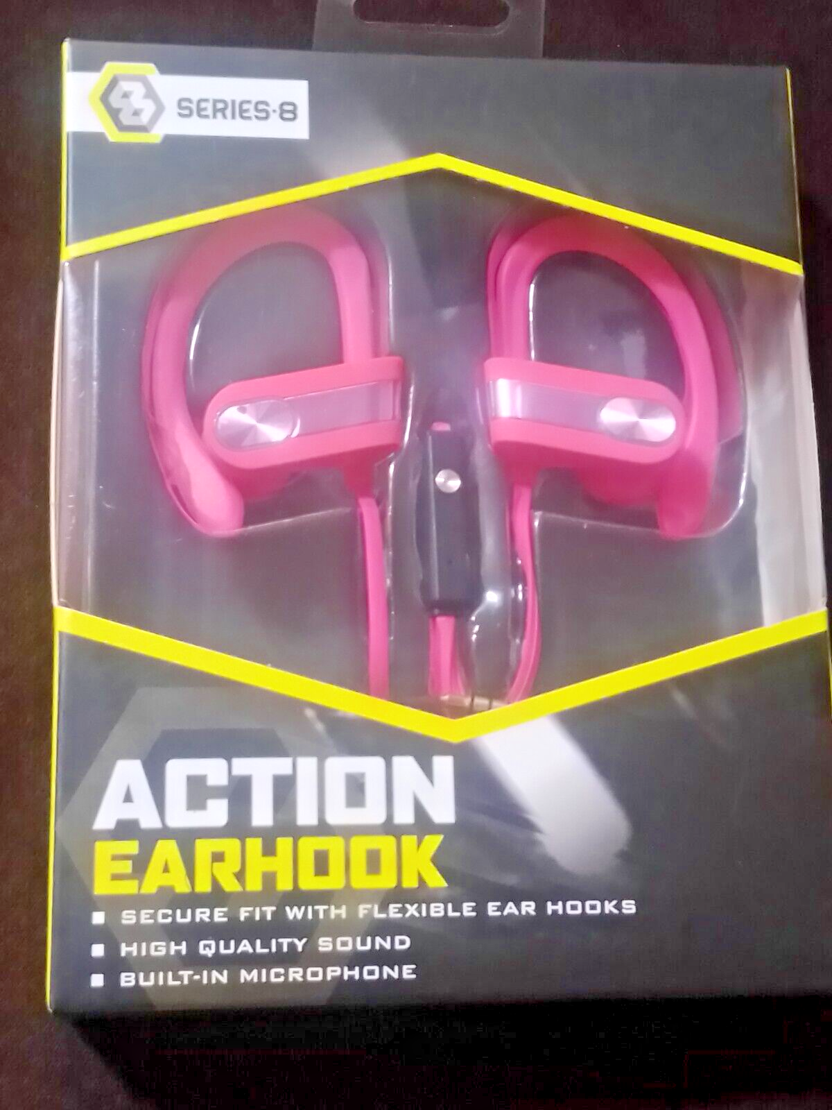 SERIES 8 FITNESS ACTION EARHOOK HEADPHONES NEW Flexible Earhooks Microphone/Inc
