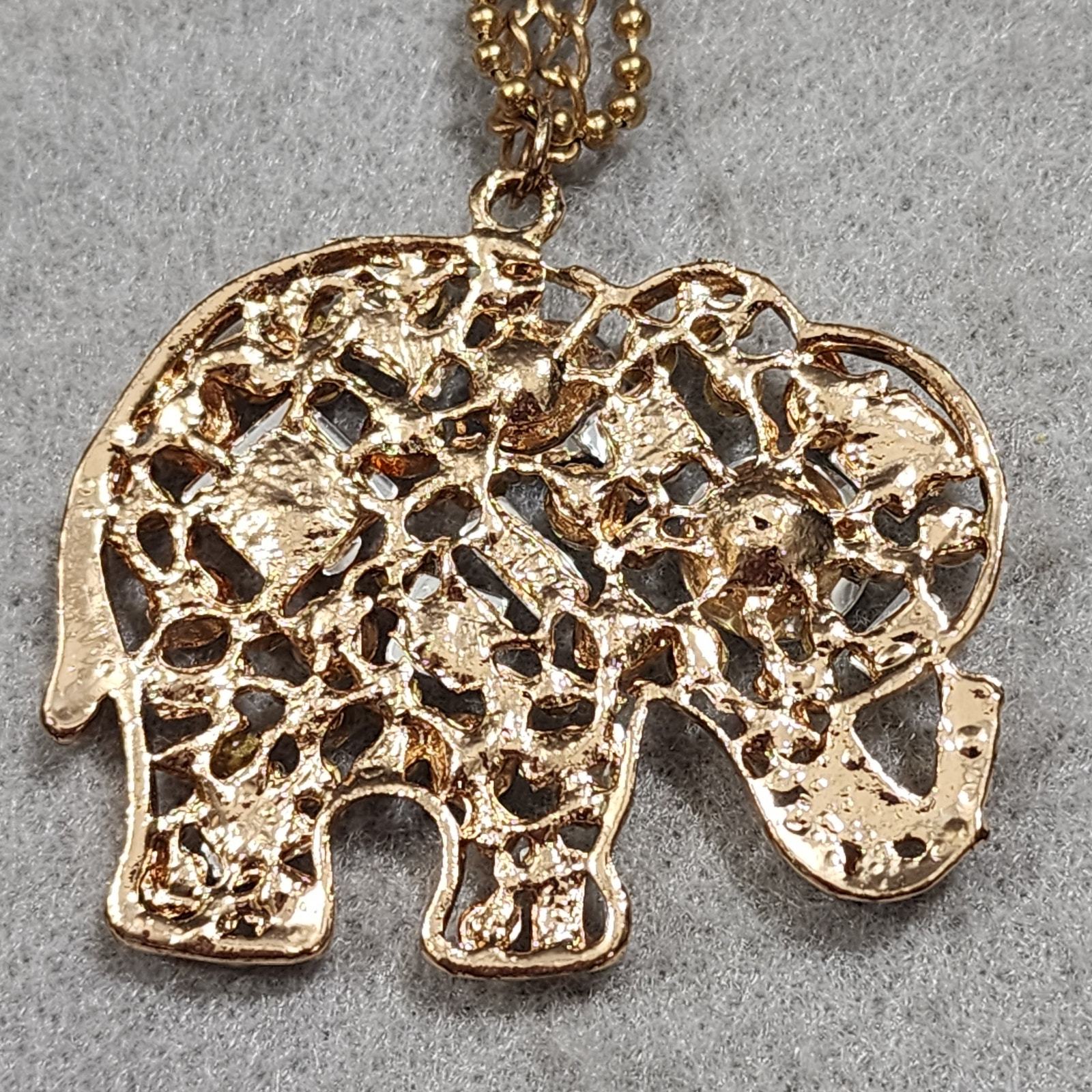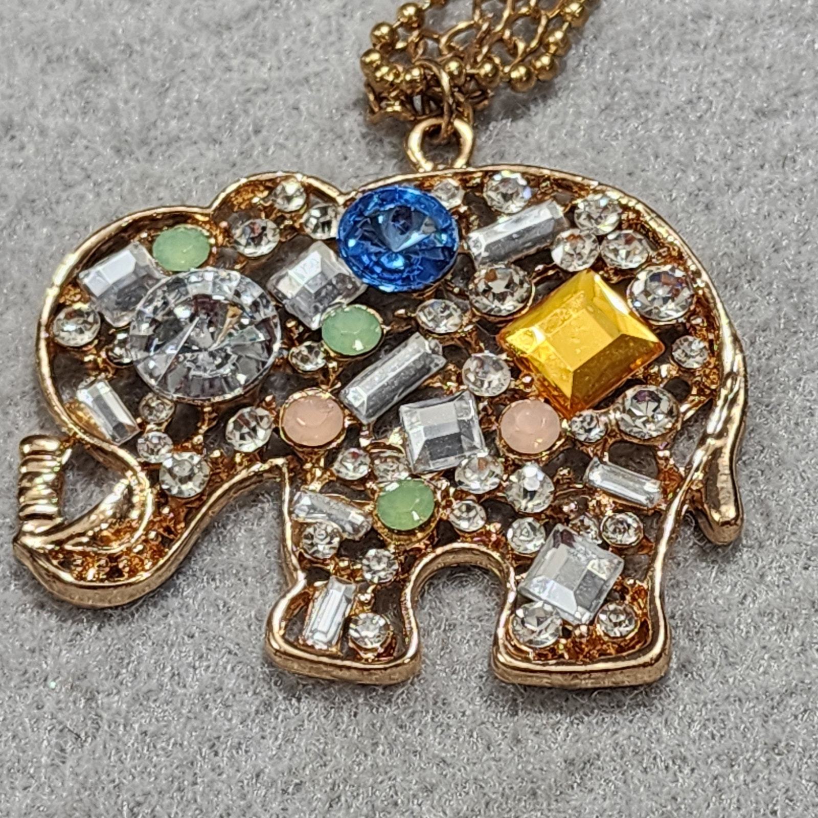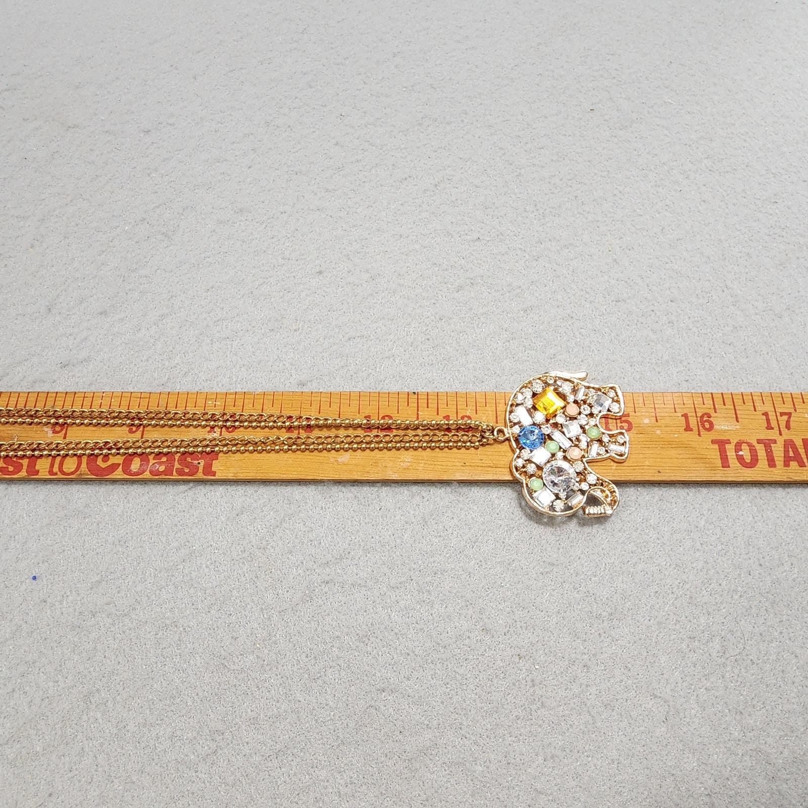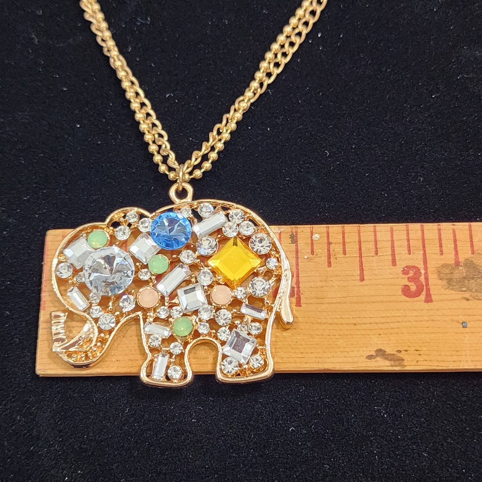 Crystal Embellished Elephant Gold Tone Double Chain 15" Drop Pendant Necklace
