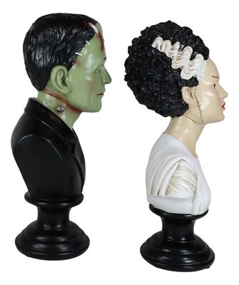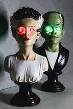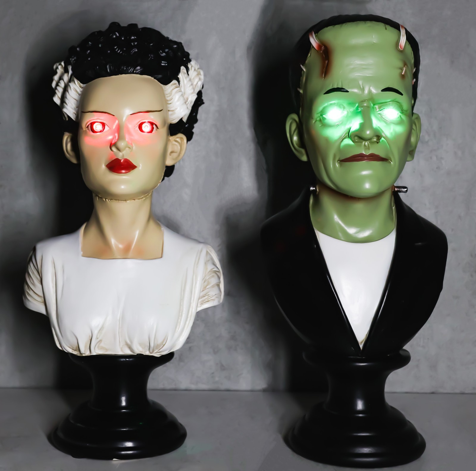 Set Of 2 Victor Frankenstein With Elizabeth Bride Bust Figurines With LED Eyes