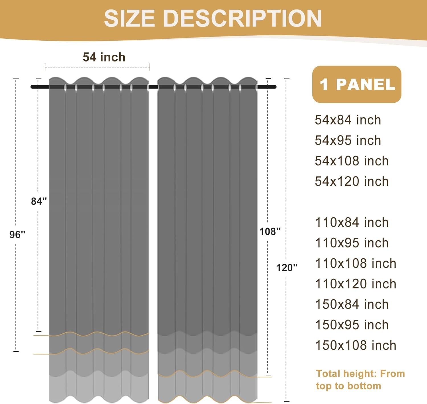 WHAT'S IN THE PACKAGE? Each set includes 1 outdoor curtains. Each curtain measures 84 wide by 84 inch long. The curtains are finished with rust proof grommets/eyelets with a 1.6-inch diameter to easily accommodate the pole.