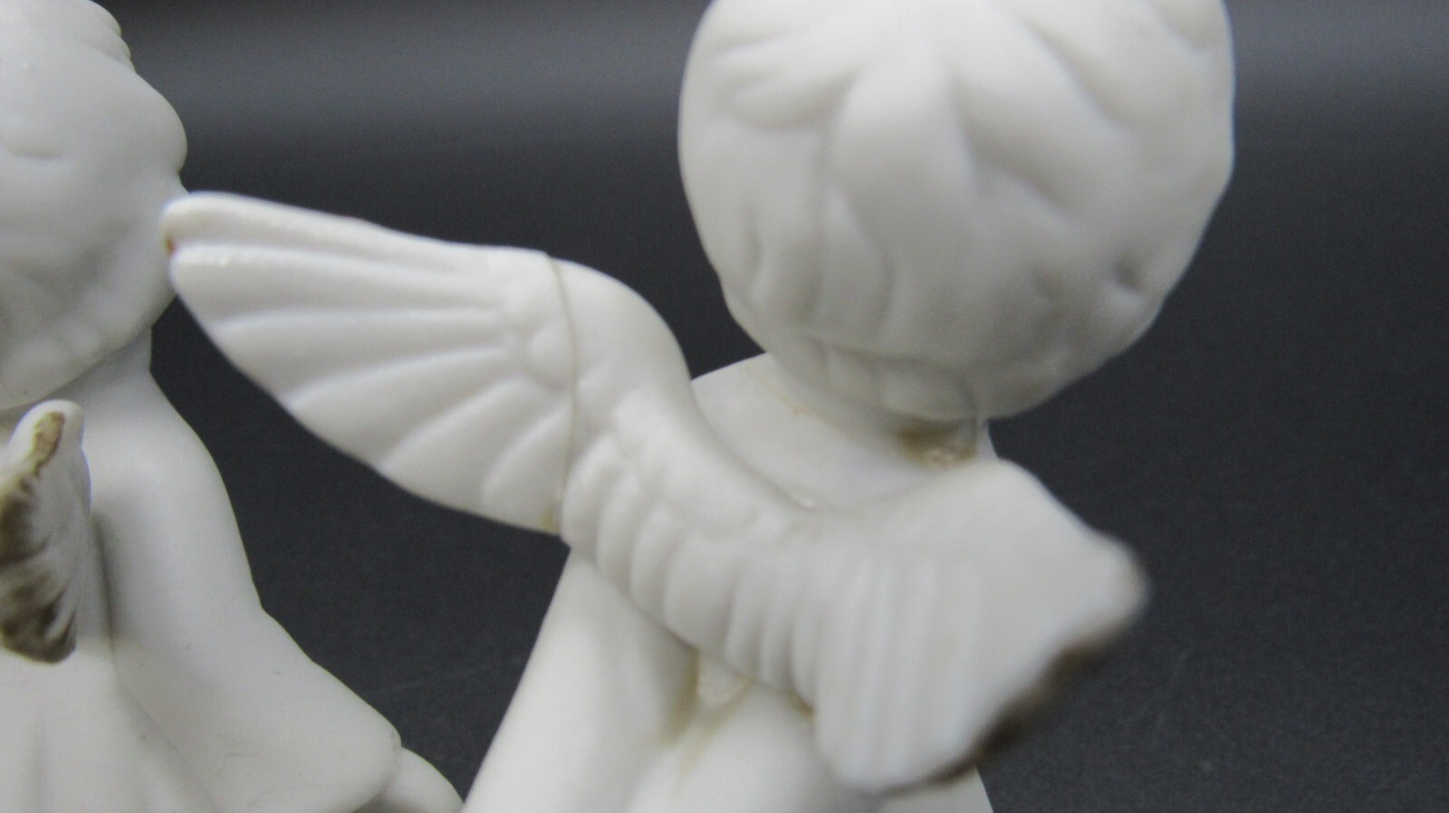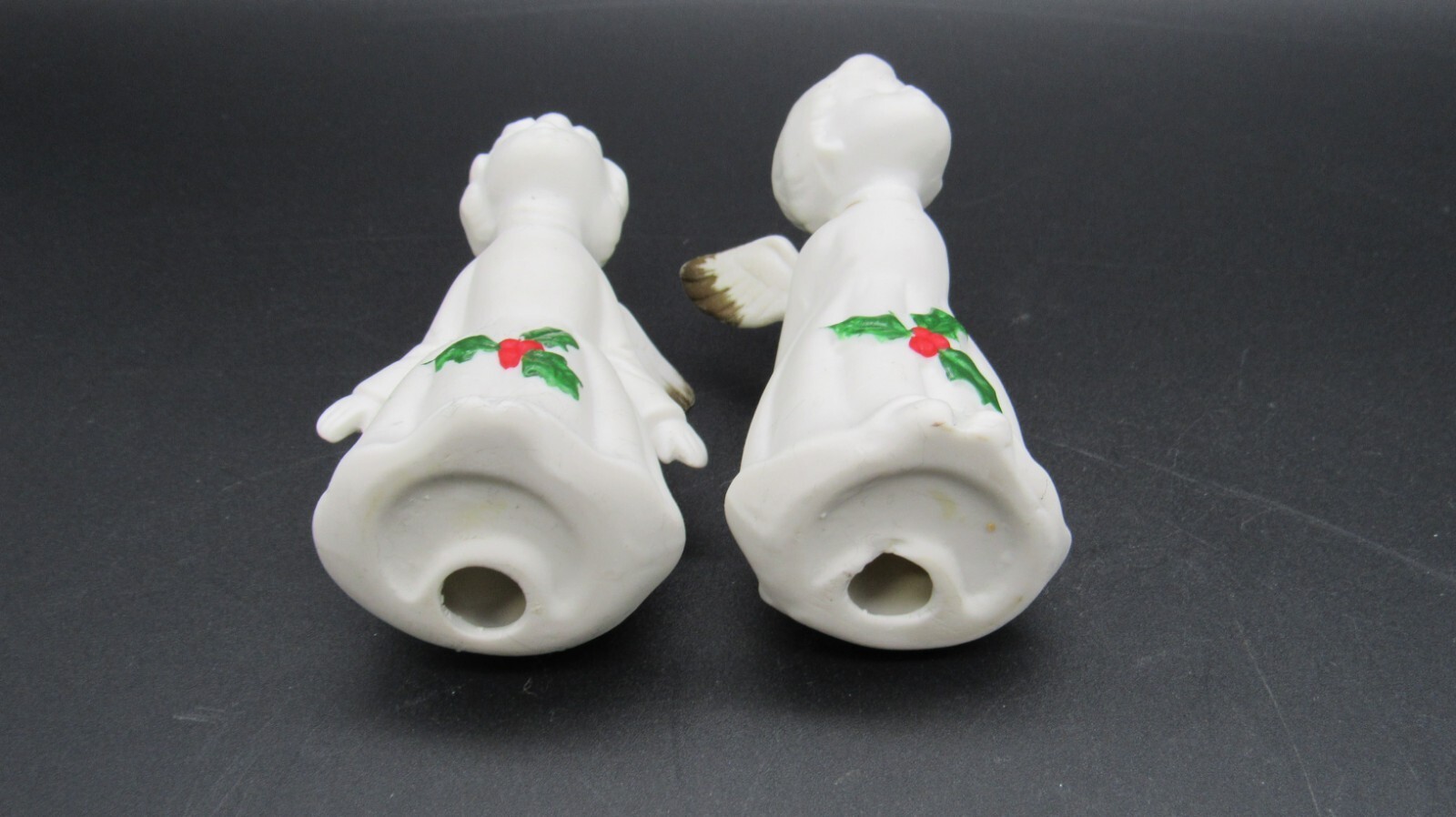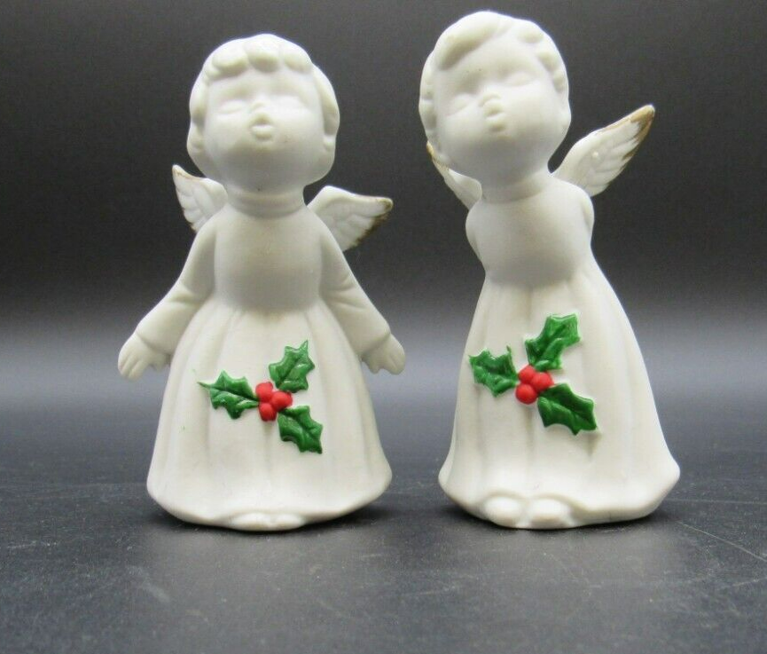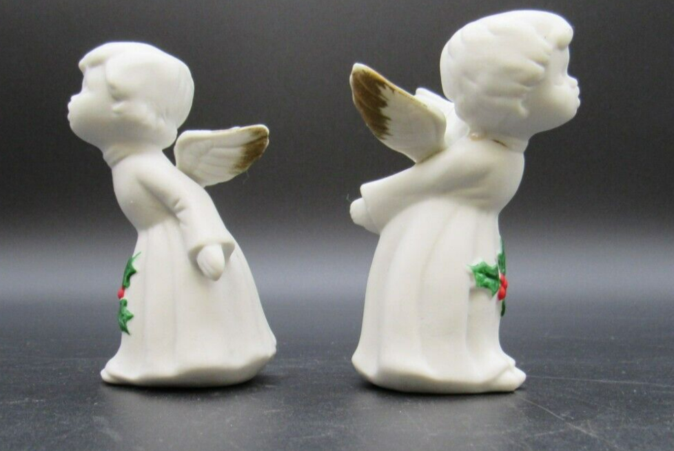Vintage Napcoware Kissing Angels Hand painted Bisque White figurines Holly
