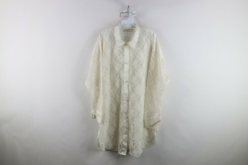 Vintage 90s Victoria's Secret Womens M / L Flower Lace Button Night Sleep Shirt