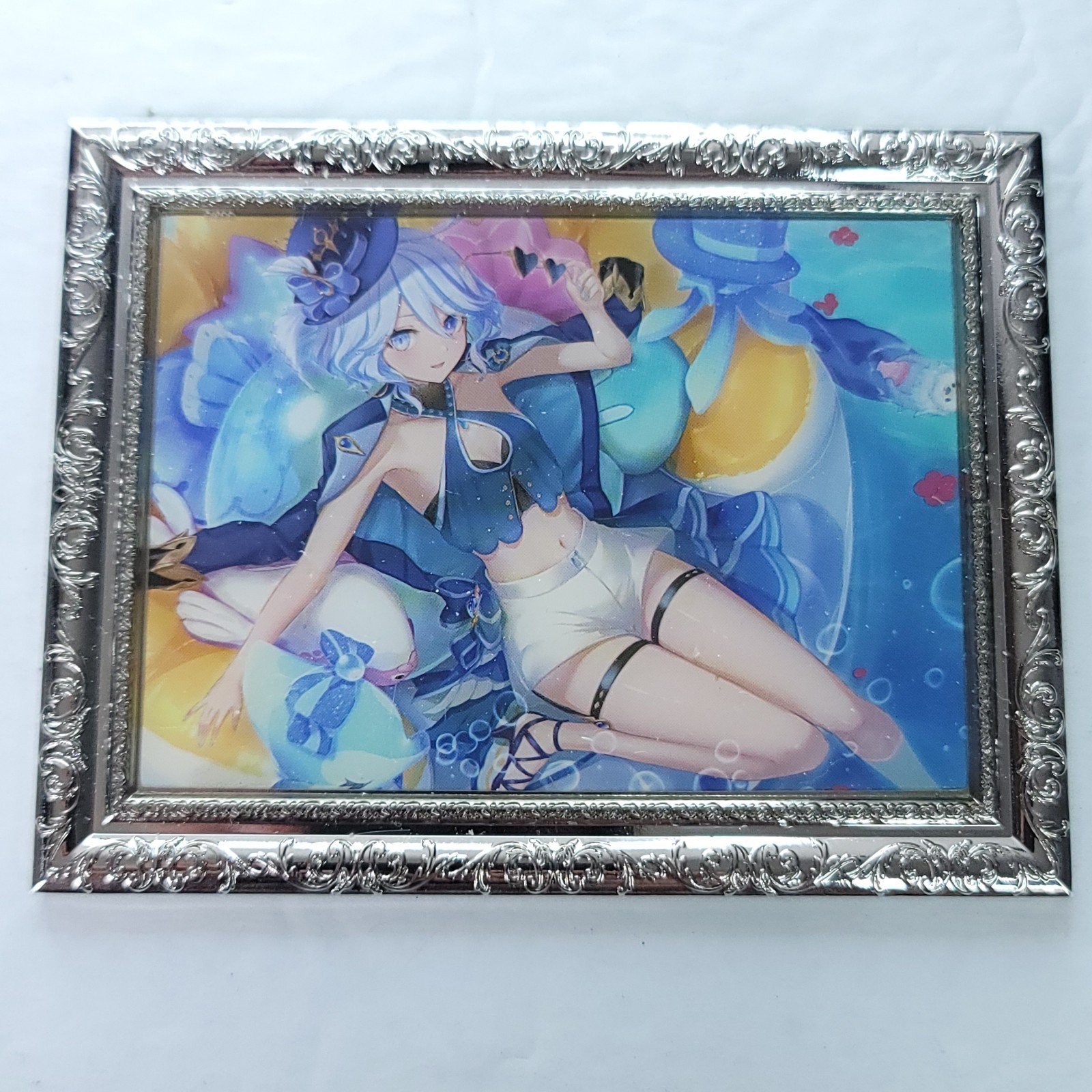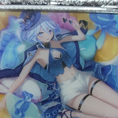 Furina Blue Hat Waifu Anime Girl Trading Card SIlver Heavy Metal 3" x 4"