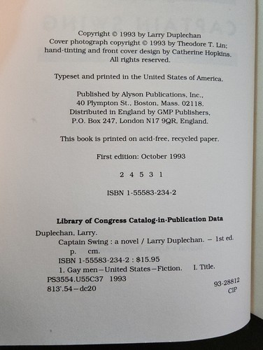 Captain Swing by Larry Duplechan (1993, and similar items
