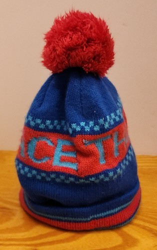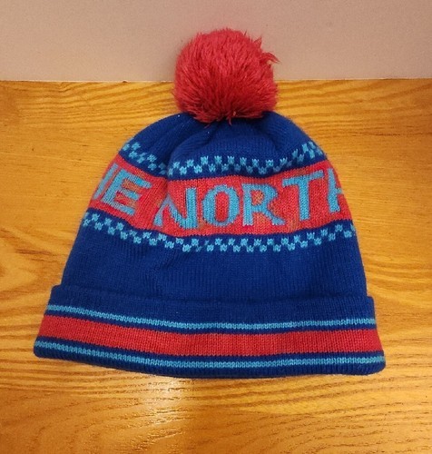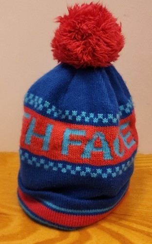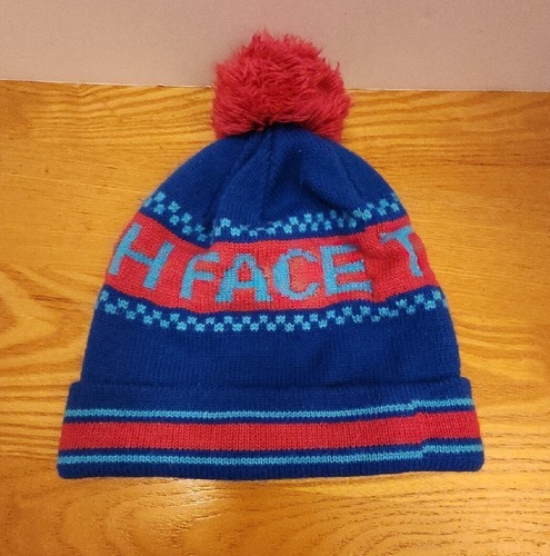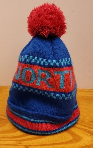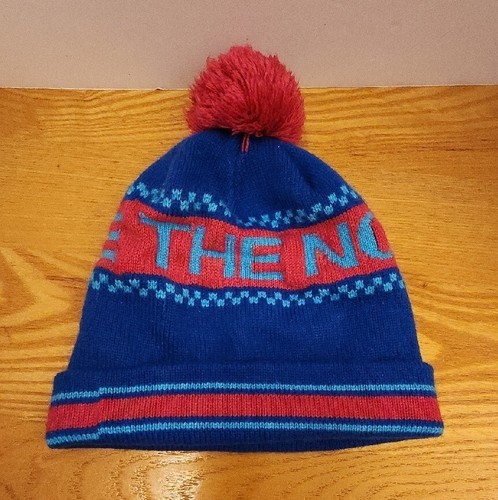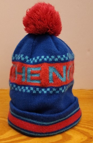 THE NORTH FACE Spell Out Beanie Winter Hat With Pom Pom Unisex Blues and Pink.