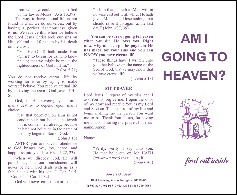 "Am I Going To Heaven?" Tri-Fold Brochure by Sowers Of Seed 8.5x11" (24 Pcs)