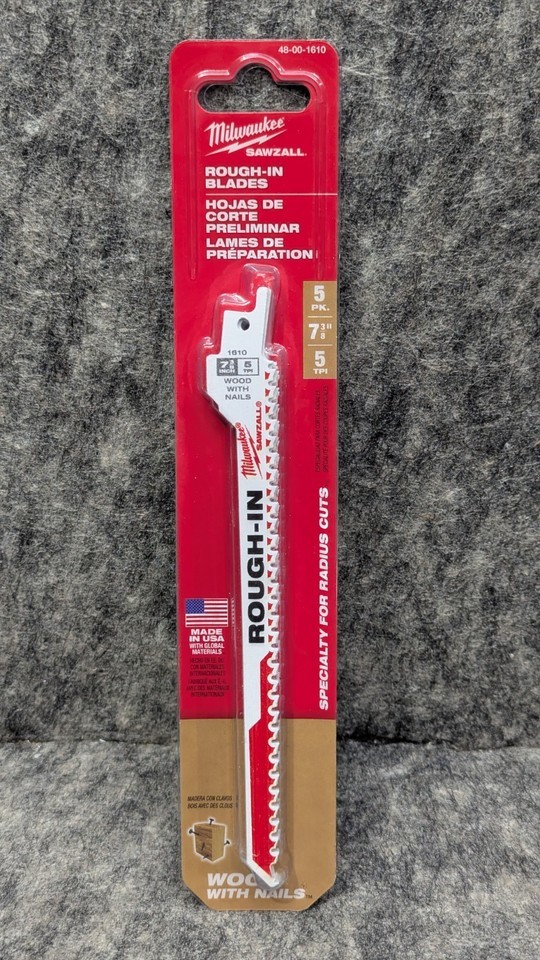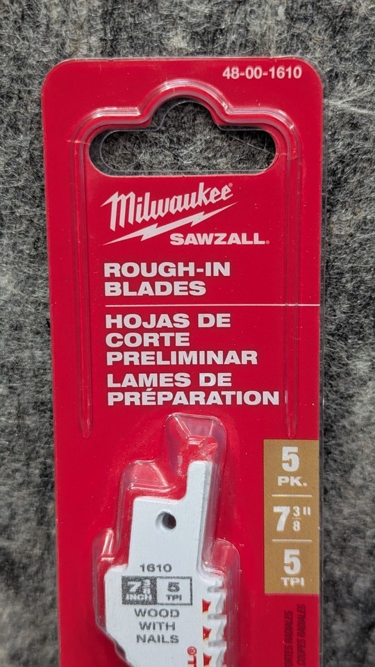 New 5 Pk Milwaukee Tool 48-00-1610 Sawzall Rough-In Blade