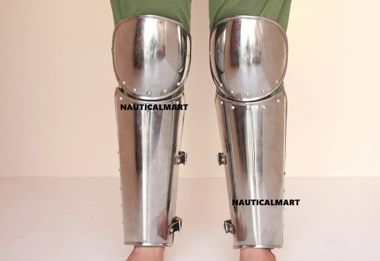 Medieval Steel Knight Greaves Armor Costume for Roleplay and Cosplay Halloween Costume
