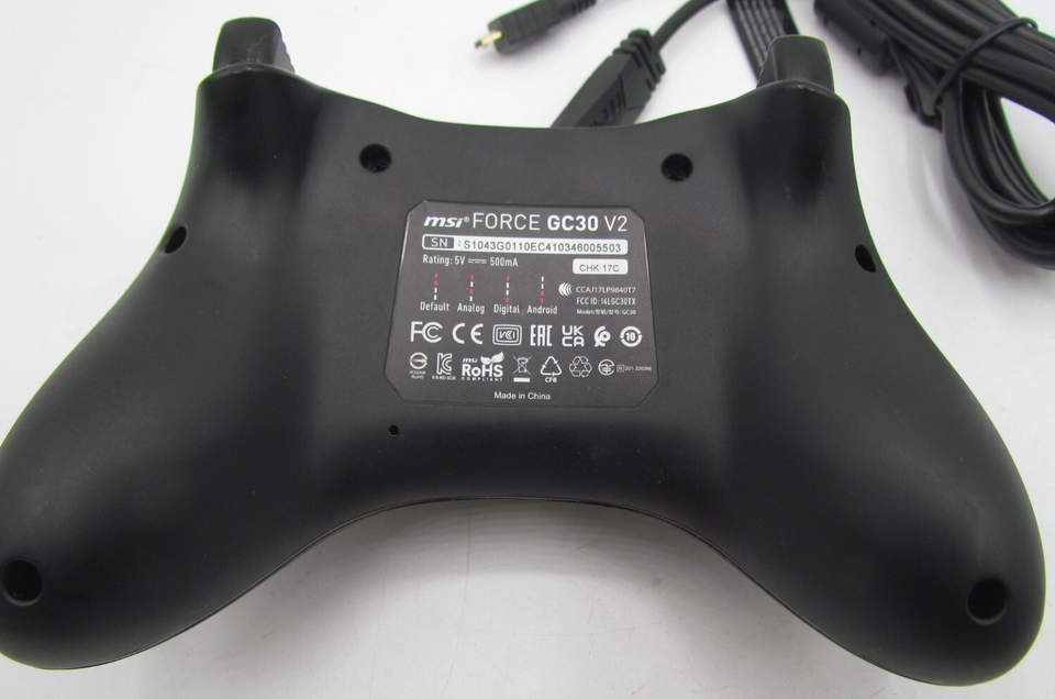 The MSI FORCE GC30 V2 Wireless Gaming Controller is a high-quality gaming controller designed for ultimate performance. With both wired and wireless connectivity options, this controller offers flexibility and convenience for gamers. The MSI brand ensures reliability and quality, while the model Force GC30 V2 represents the latest technology in gaming accessories. Perfect for enhancing your gaming experience, this controller is a must-have for serious gamers looking for precision control and seamless connectivity.