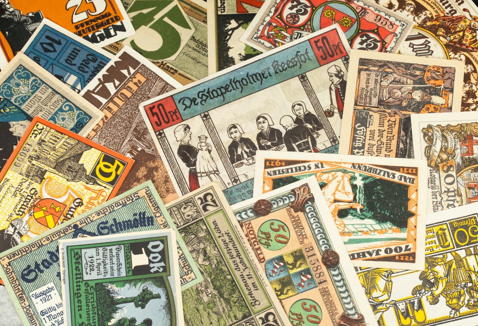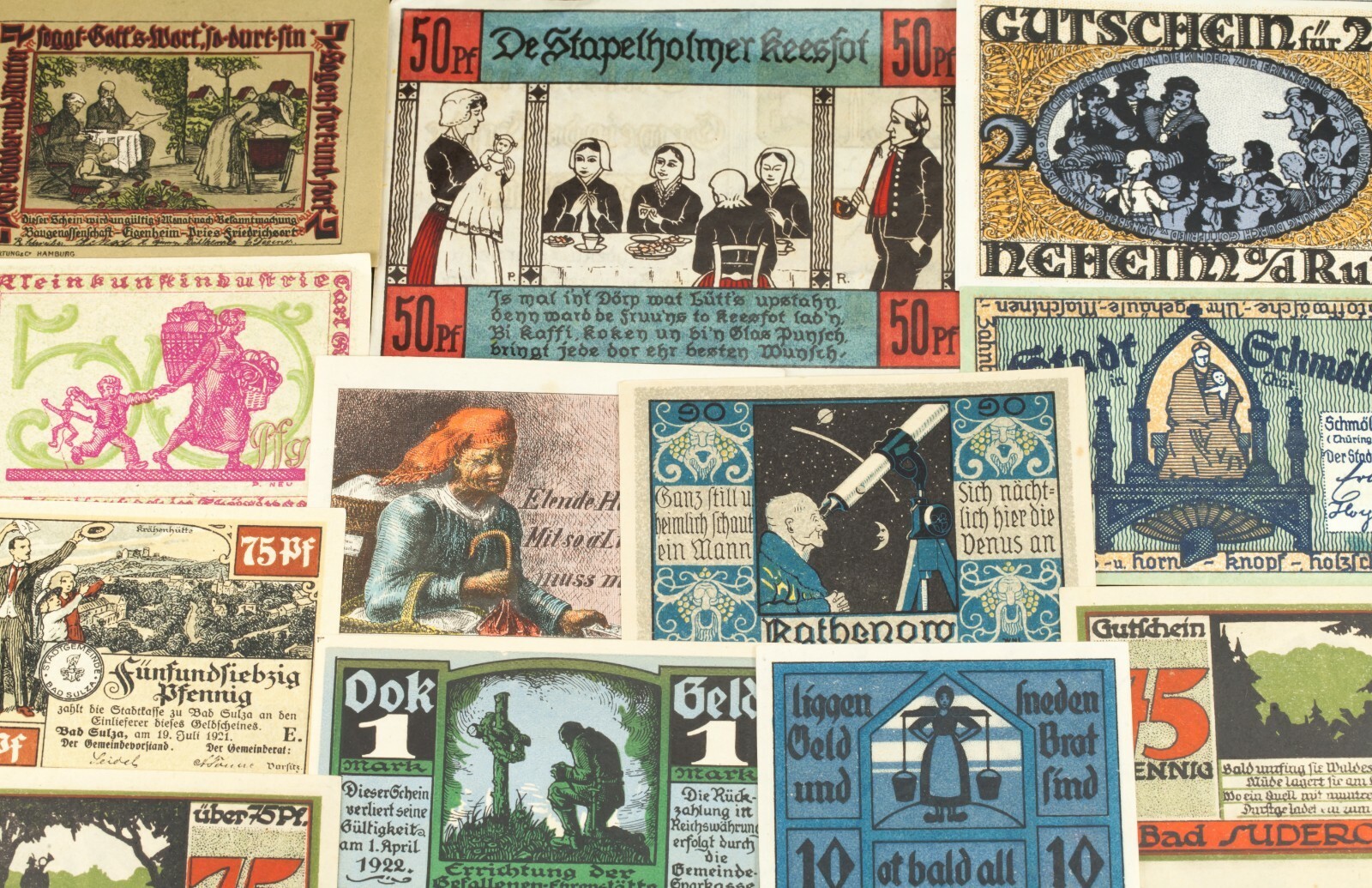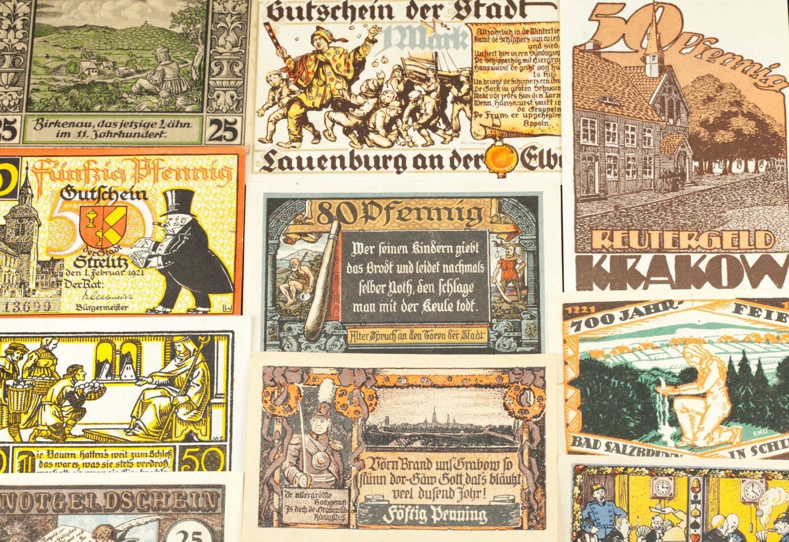 Ce lot comprendra 25 notes de notgeld individuelles d'Allemagne apres la Premiere Guerre mondiale. Valeurs faciales entre 5 pfennig a 5 marque. Theme des gens; groupes et individus.