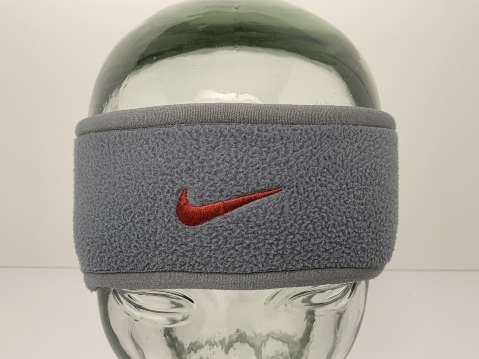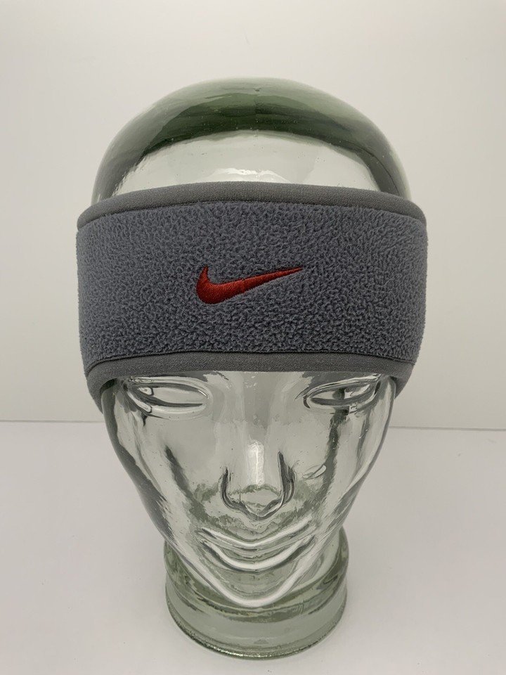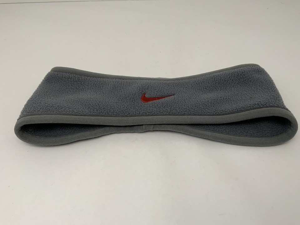 Nike Swoosh Fleece Headband Gray, Red Accents Ear Warmer Unisex One Size. Clean and in Excellent Pre-Owned Condition. Measures approximately 9.75? when flat.