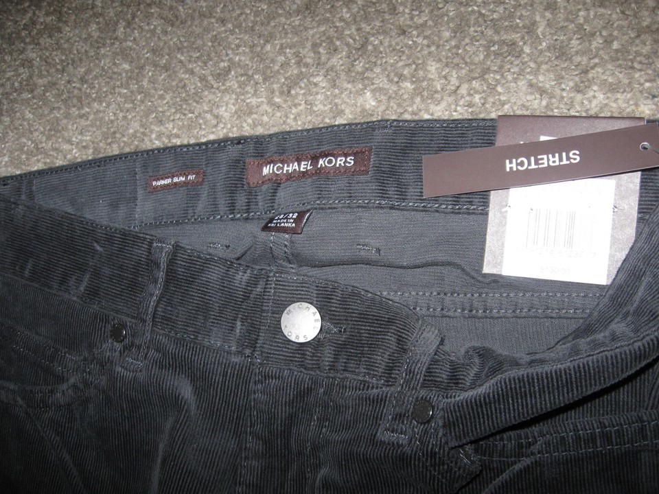 NWT Men's Michael Kors Corduroy Pants Parker Slim Fit dark gray This is a a great RARE pants. This is a Michael Kors Pants and good to go. Parker Slim fit zip front / 99% cotton. Condition: This is mint w/ tags FREE USA SHIP. Will ship international. Please ask questions.