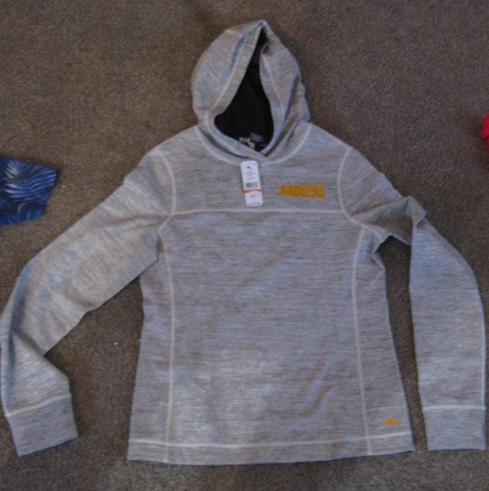 NWT Women's NFL Tailgate Reversible Tommy Bahama Sweatshirt Hoodie - GREEN BAT Packers SZ- s Small This is a a great RARE Sweatshirt hoodie. Are you kidding. You get two in ONE!!!! ONe side is grey and the other is dark gray. This is a Football Shirt of The Powerful PACK. Condition: This is mint w/ tags dimensions: arm pit end of sleeve - 20 in Across chest (pit to pit) - 16-17 inches top of collar to bottom (total length - 24 inches) FREE USA SHIP. Will ship international. Please ask questions.