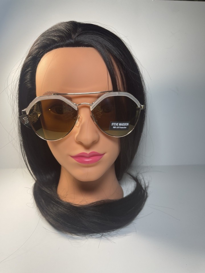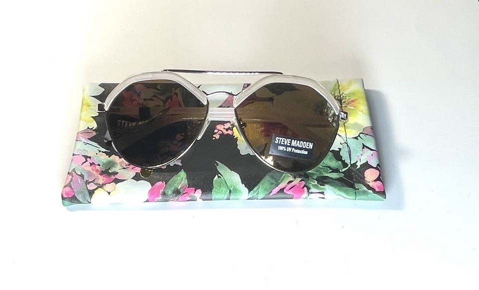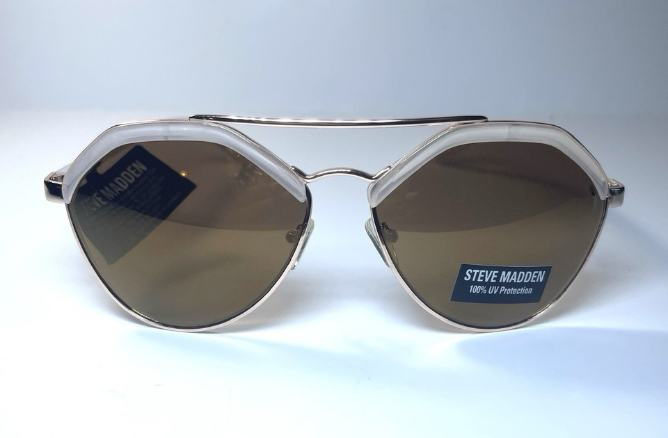 NEW STEVE MADDEN Beige Gold Geometric Style SM472171 Sunglasses + Case