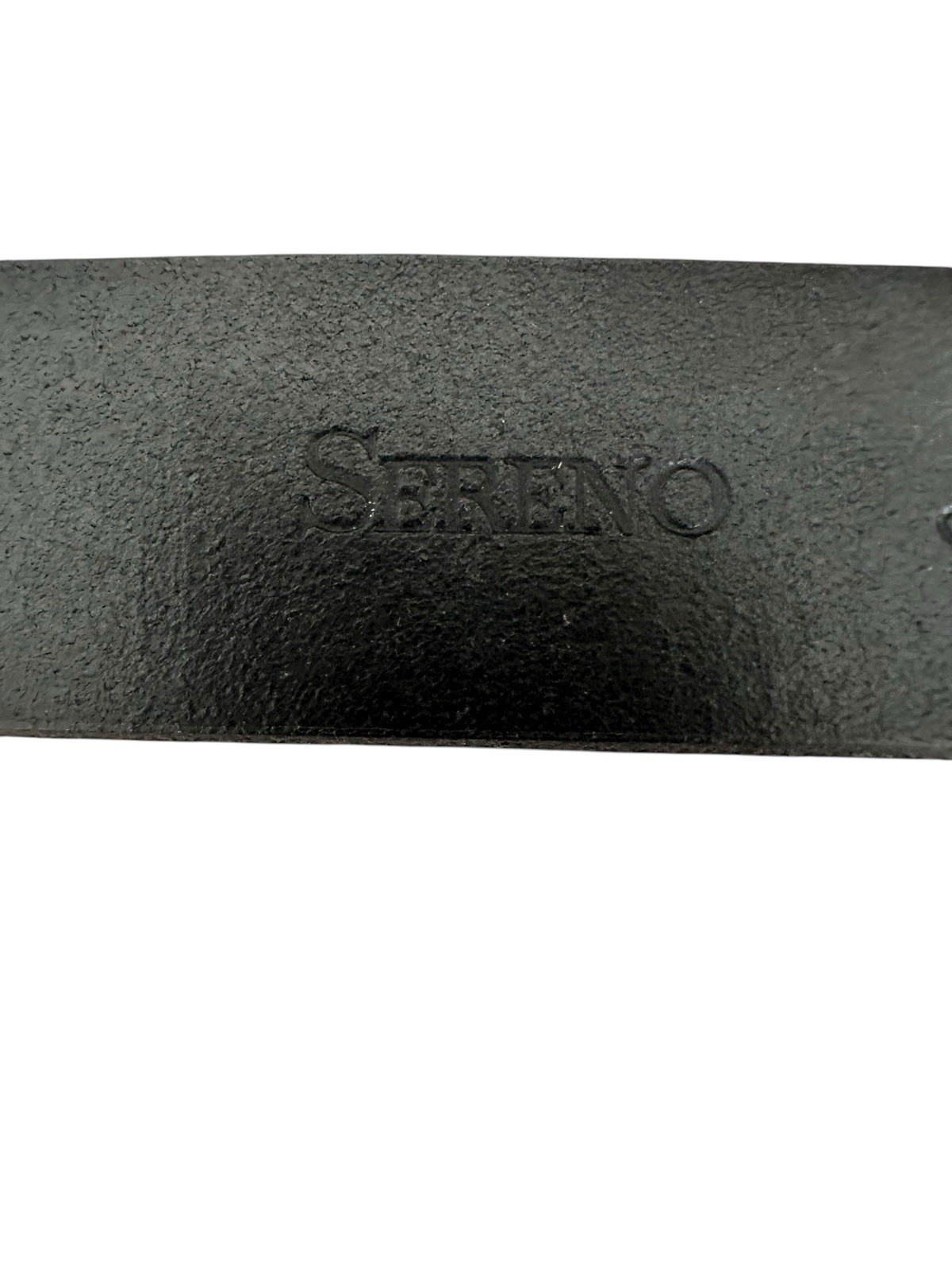 SERENO Italian Black Leather Belt, XL size. Crafted in Italy from genuine leather and finished with a sturdy metal buckle featuring elegant floral embellishment. A refined accessory that highlights the artistry of Italian design, combining durability with timeless style. Preowned in excellent condition ? a versatile statement piece for both casual and dress wear