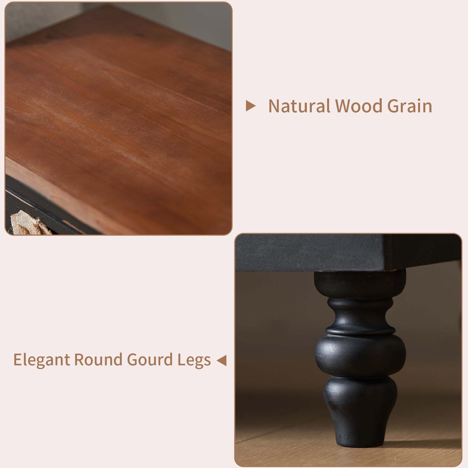 Color and Material: The main body of the bedside table is black and has a distressed effect, creating a retro and simple atmosphere. The top and the interior of the drawers are made of natural wood, adding elements of nature and warmth.