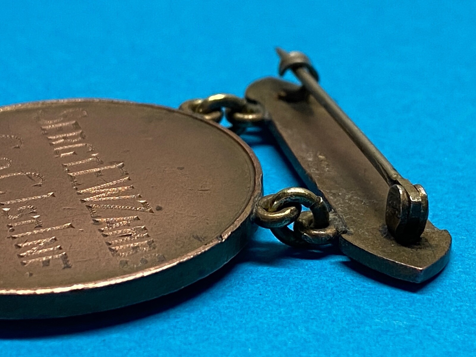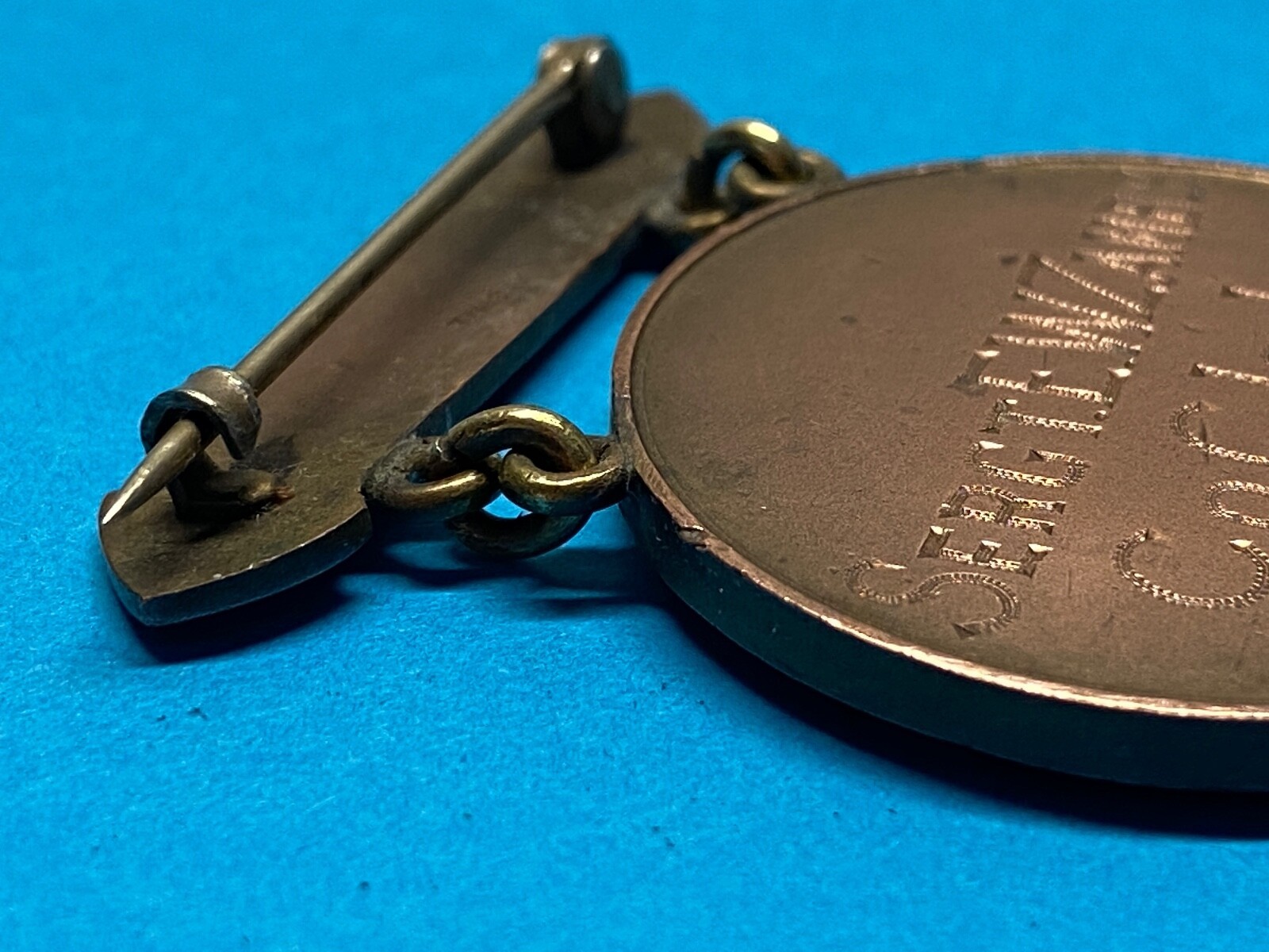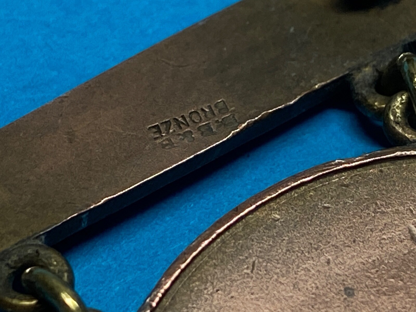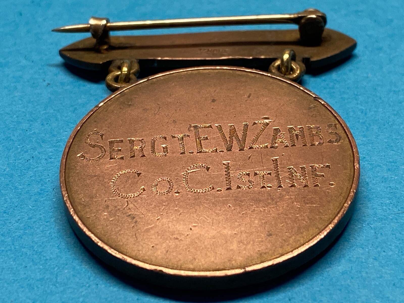 New Hampshire National Guard Shooting Medal N.H.N.G 1913. Pin-back. Gorgeous piece, hallmarked, BB B Bronze on reverse of suspension bar. (Bailey, Banks Biddle). Hand engraved on reverse: Sergt. E. W. Zambs / Co. C. 1st Inf. Sergeant Zambs died in 1918 due to pneumonia.