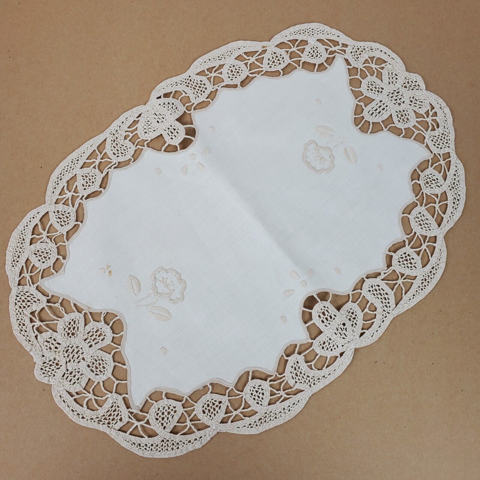 Vintage Embroidery Table Runner Dresser Doily Oval Beige 16x11 Inch