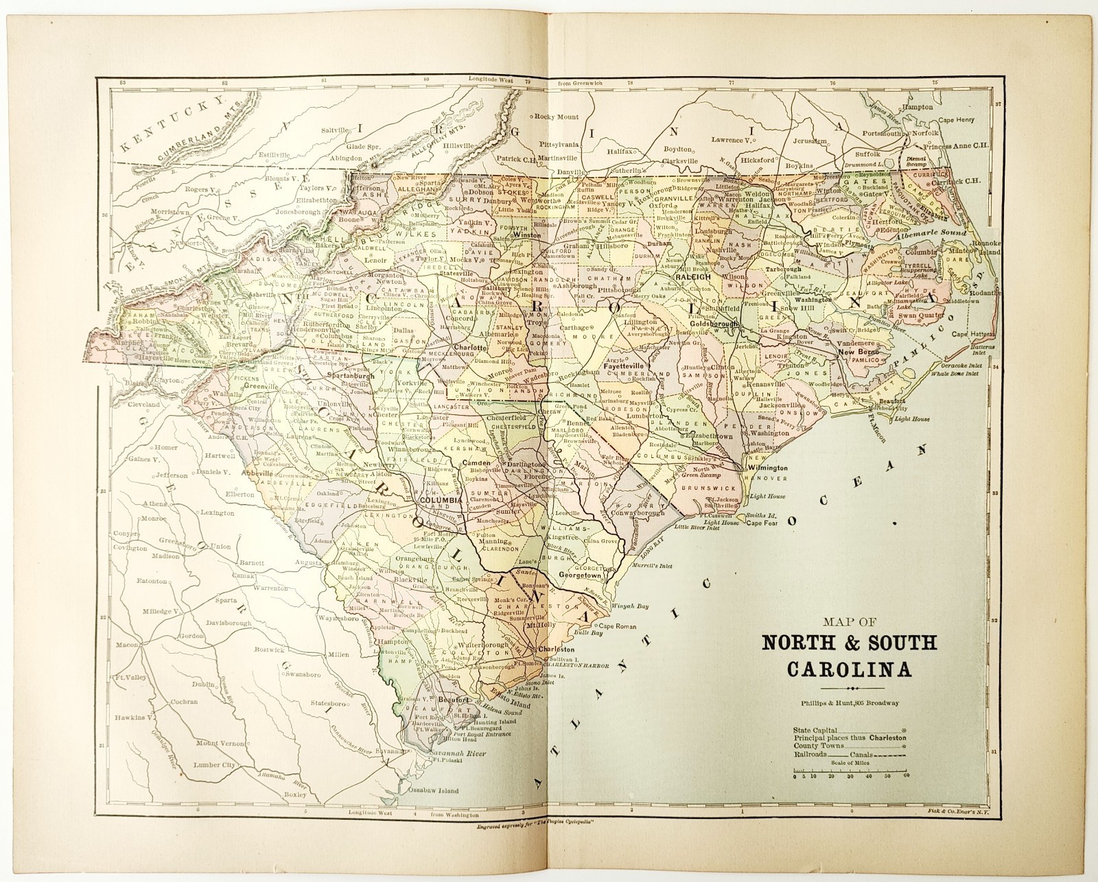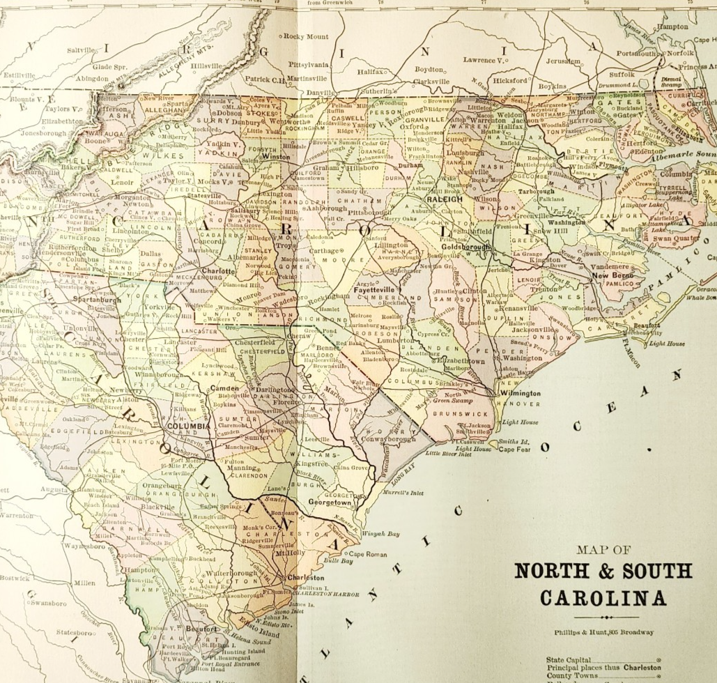 1883 Antique Map North & South Carolina and 39 similar items