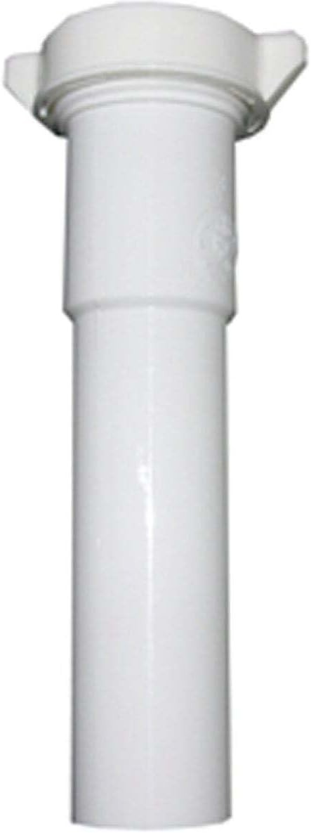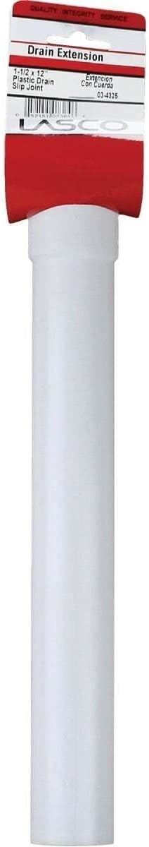 The LASCO 03-4325 white plastic slip joint drain extension is a durable, ready-to-install component designed to extend or adjust the vertical length of sink drain lines in kitchen, bathroom, or laundry applications. Constructed from rigid, corrosion-resistant white plastic, it features a 1-1/2 inch outer diameter (OD) with a slip joint connection that accepts both 1-1/4 in and 1-1/2 in OD tailpieces, ensuring compatibility with standard sink drains and P-traps. The assembly includes a threaded nut and neoprene washer for a secure, leak-free seal ? no tools required for installation. Designed for use in low-pressure gravity drain systems, it provides reliable performance in wet environments without cracking, warping, or deteriorating over time.