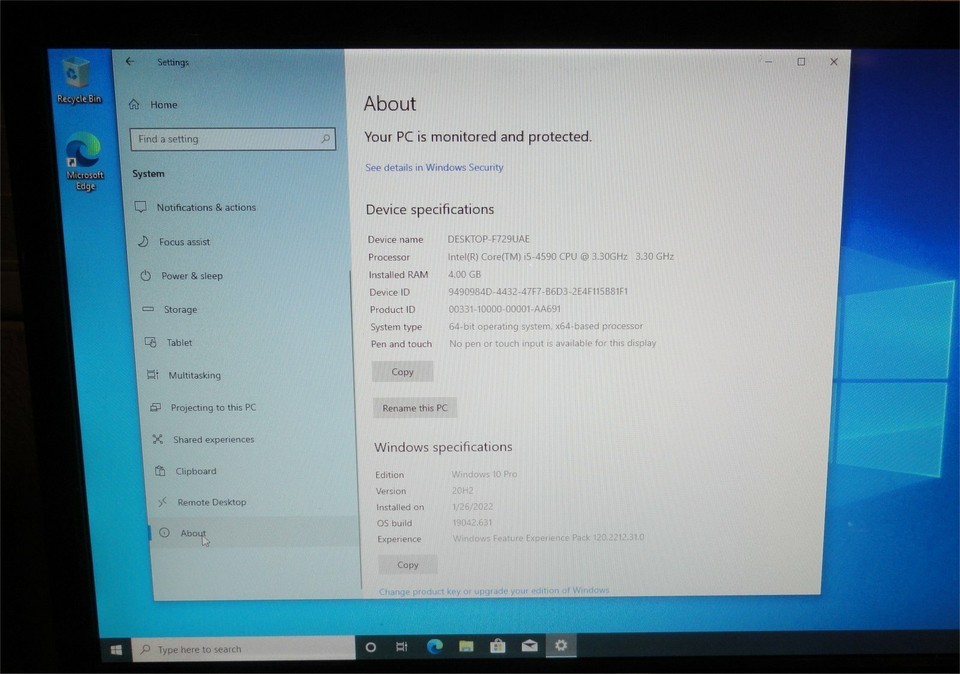 WINDOWS 10 PRO, 250GB HDD, 4GB RAM