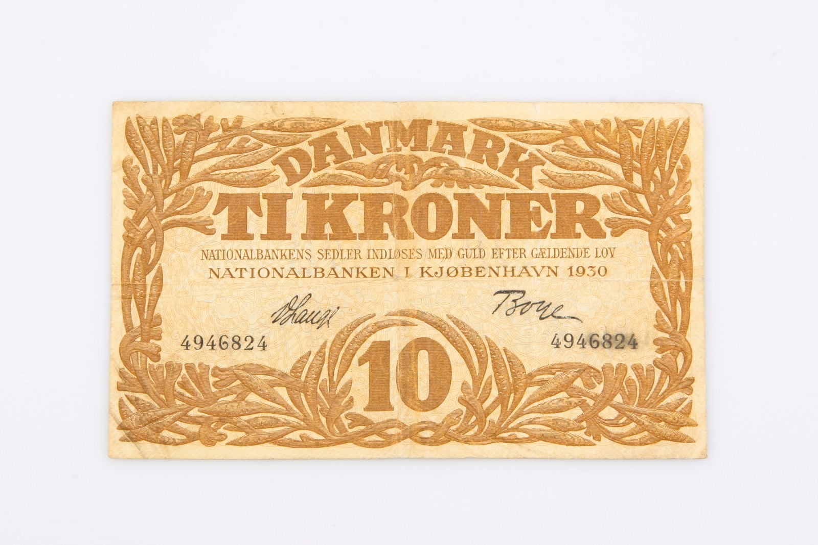 1930 Danemark Ten Kroner Note VF Nationalbanken I Kjobenhavn tres fin P # 26A
