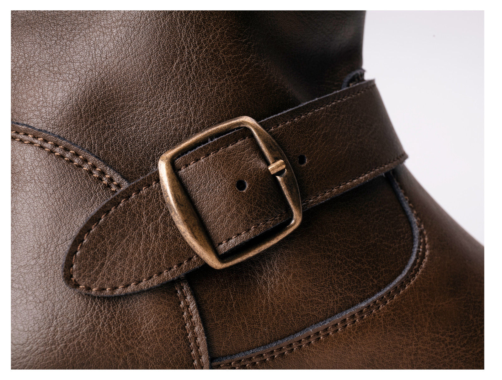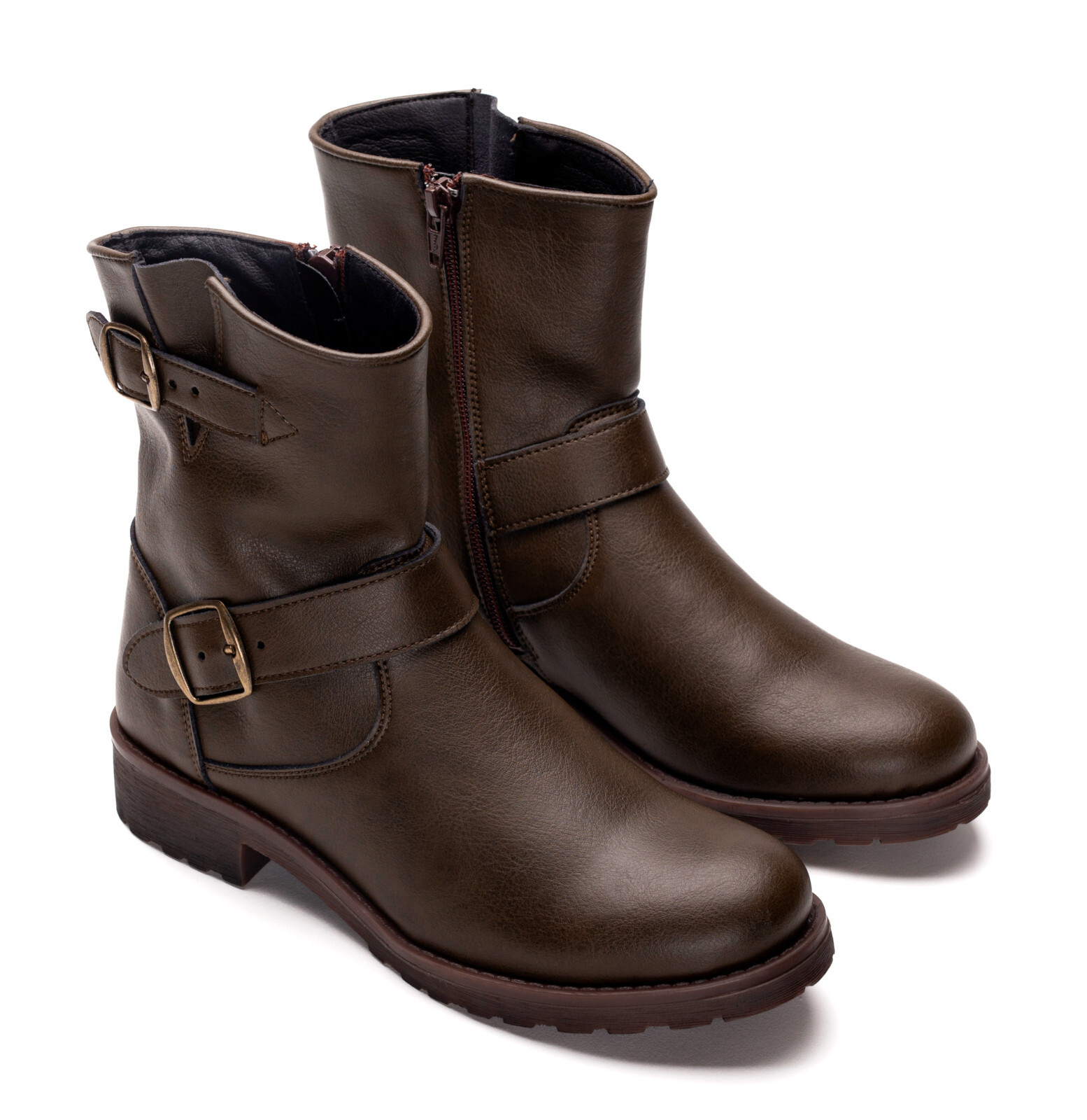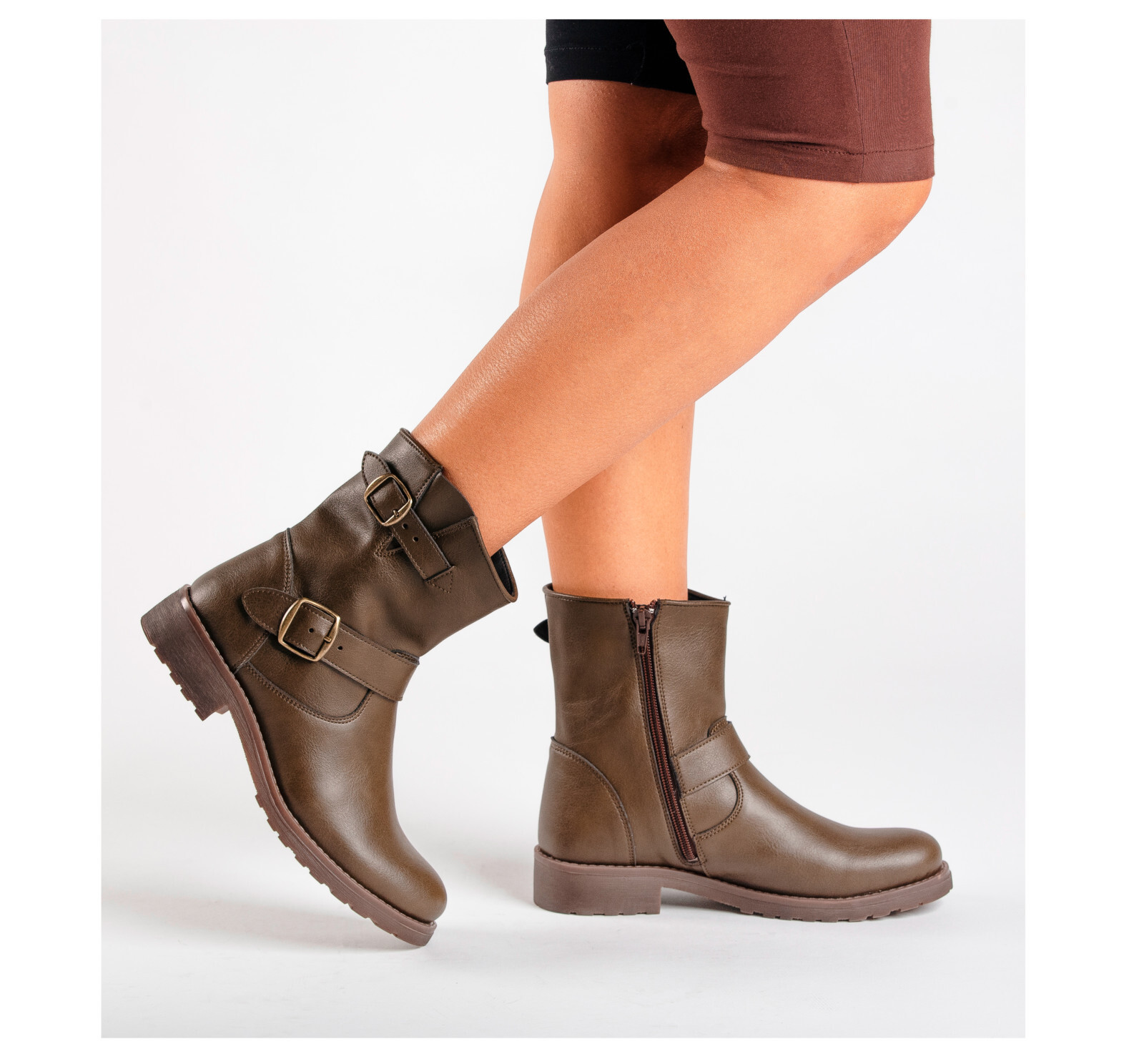 Stiefeletten Damen Biker Boot vegane Leder mit Schnallen Riemen Reißverschluss