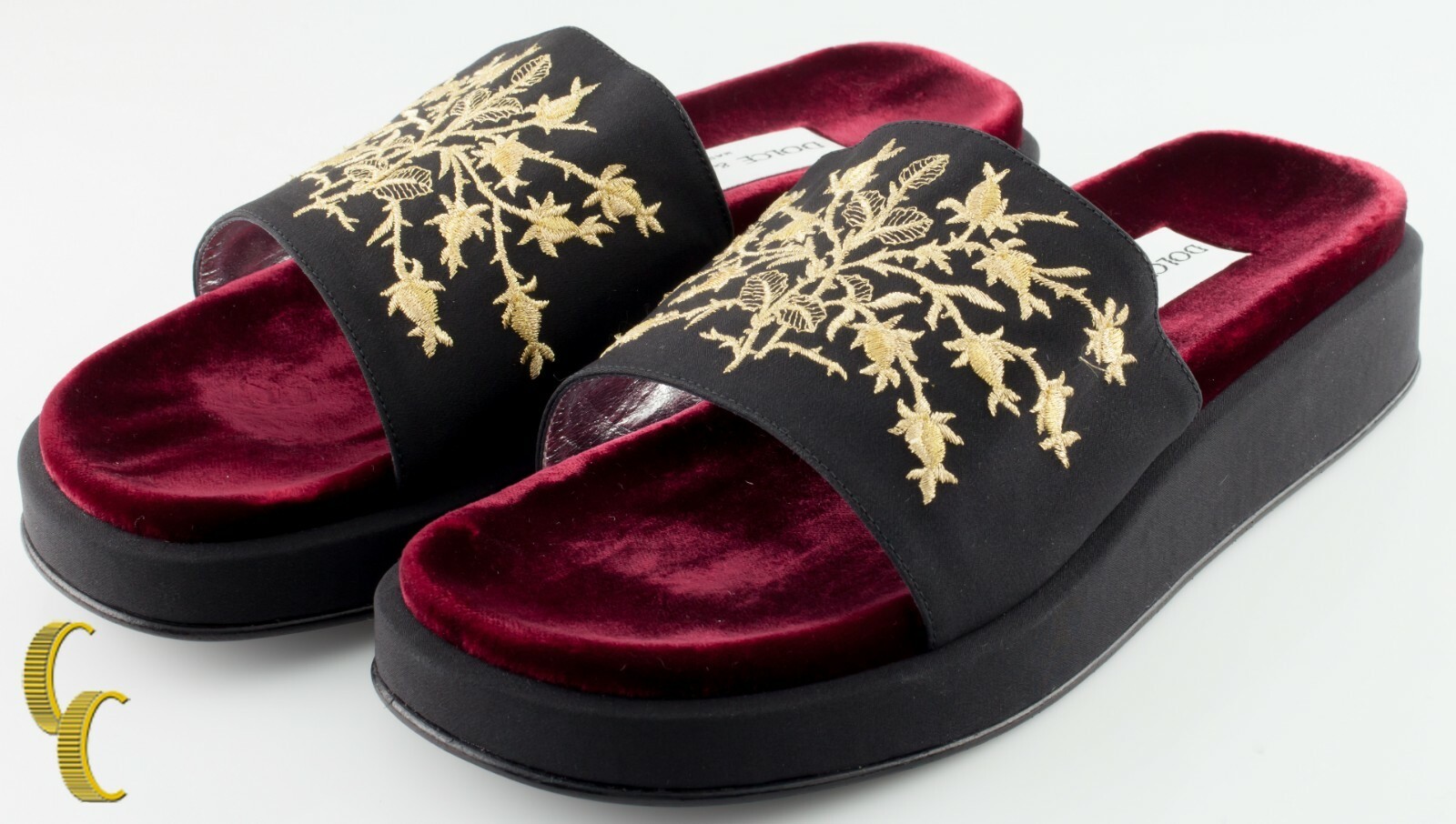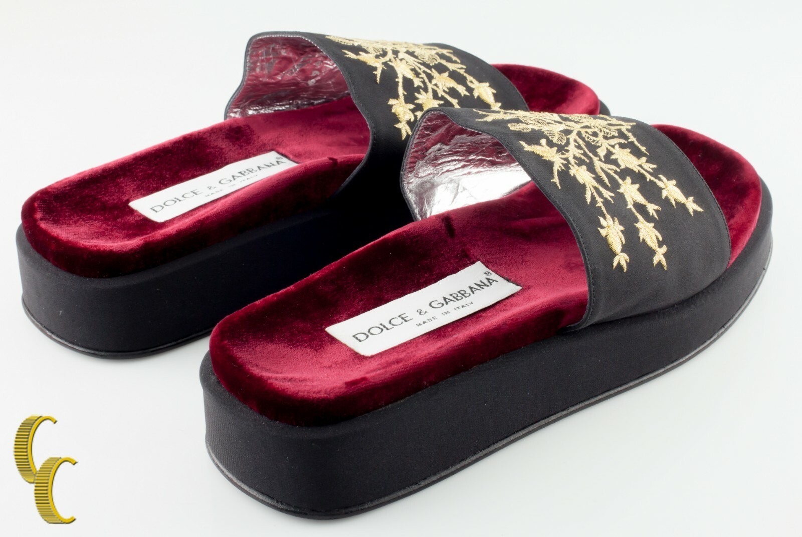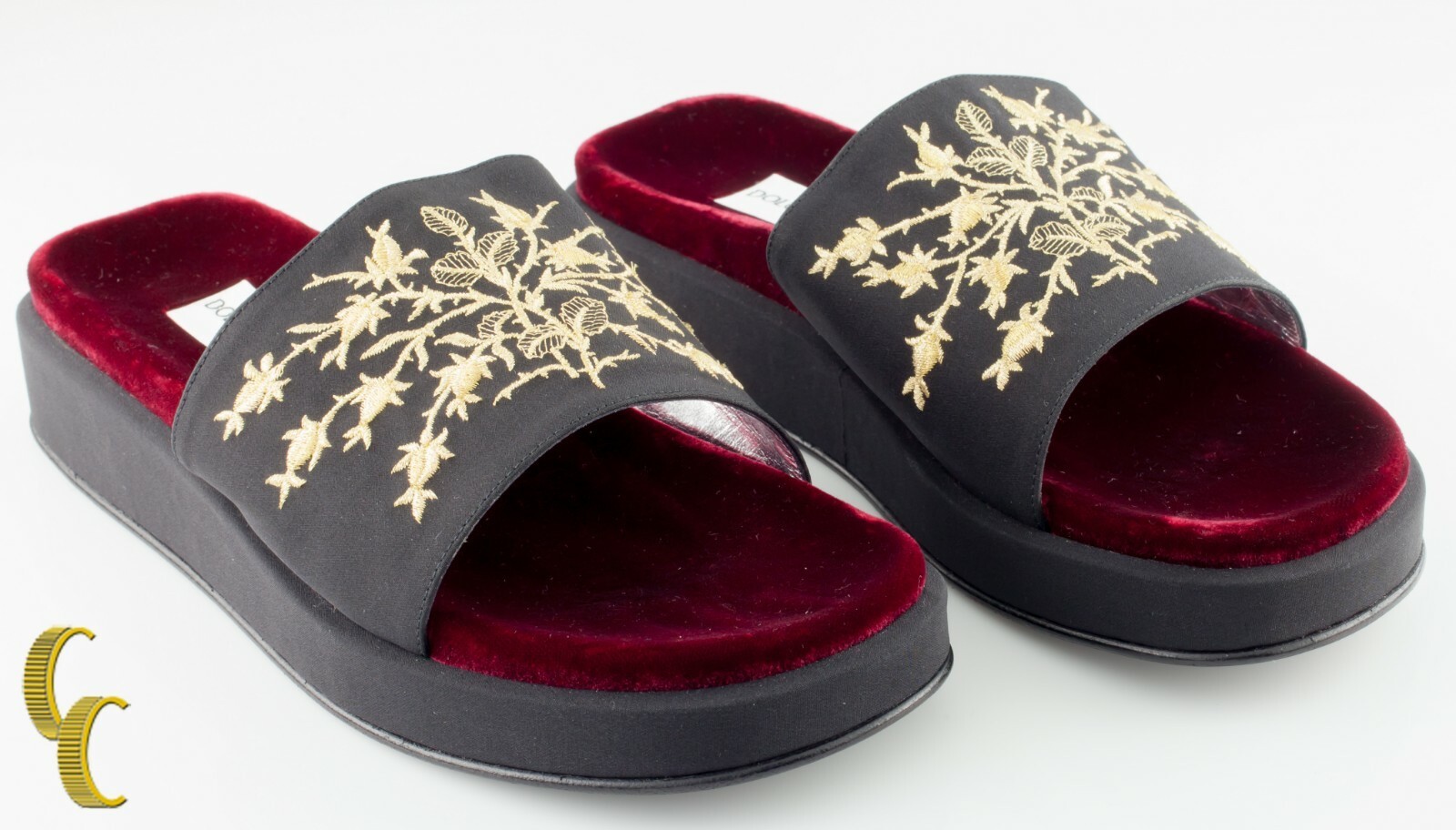 Dolce & Gabbana Velours Bout Ouvert Pantoufles W/Broderie Boite & Pochette