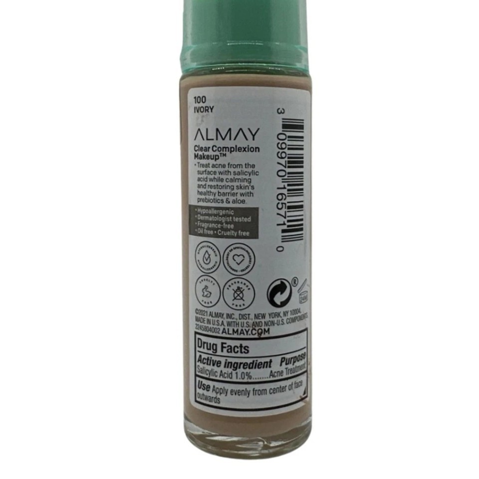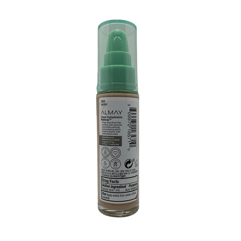 Almay Clear Complexion Foundation 100 Ivory 1oz Salicylic Acid Oil Free New
