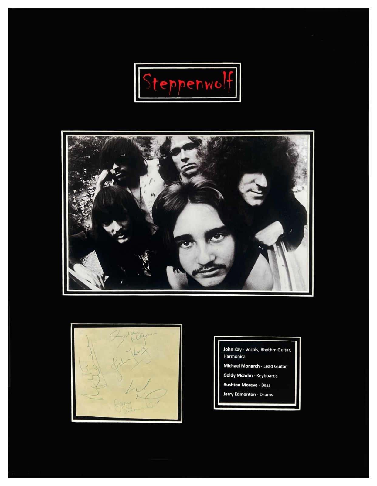 Steppenwolf Signed Autograph-5 Original Members Museum Framed Ready to Display