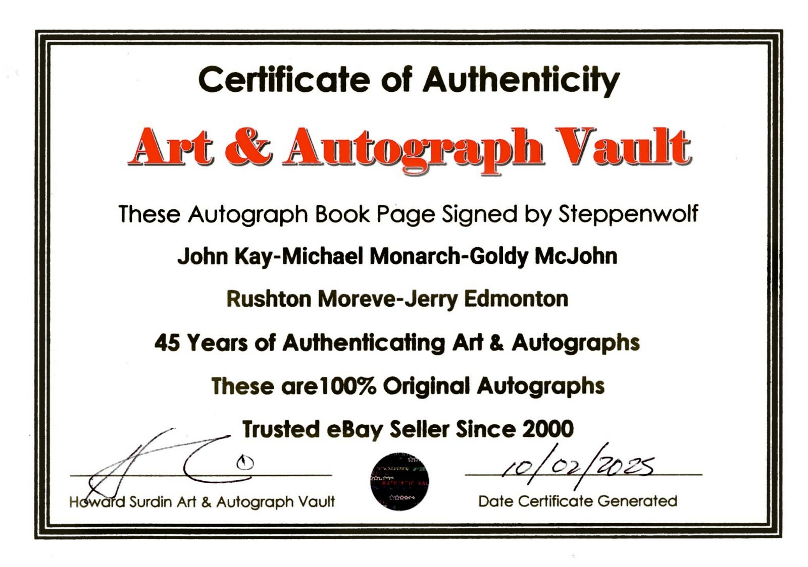 Signed by John Kay-Michael Monarch-Goldy McJohn: |