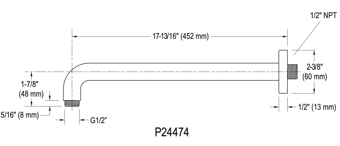 Kallista P24474-00-CP 17-13/16"" Long Wall-Mount Shower Arm Rain Head