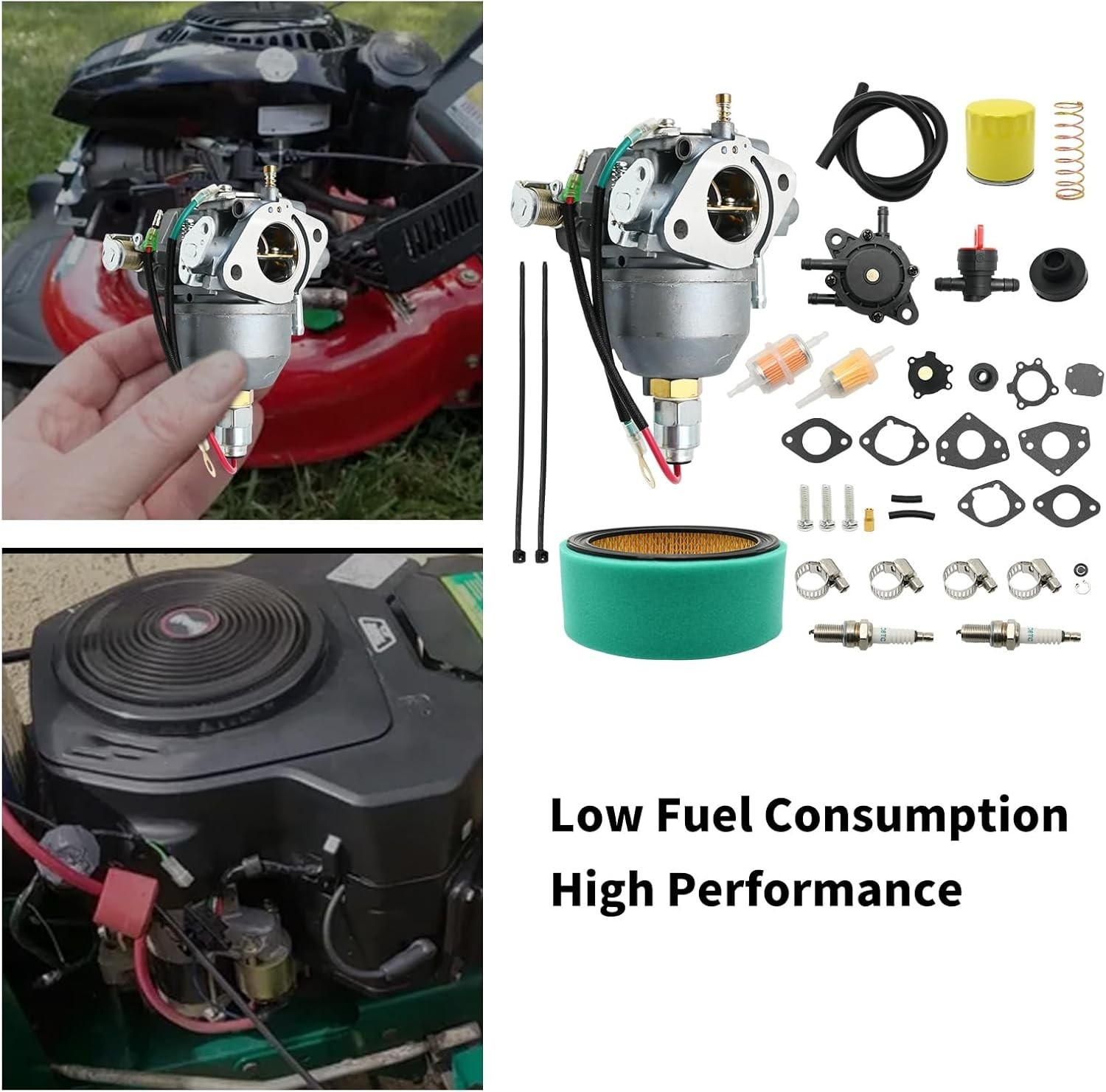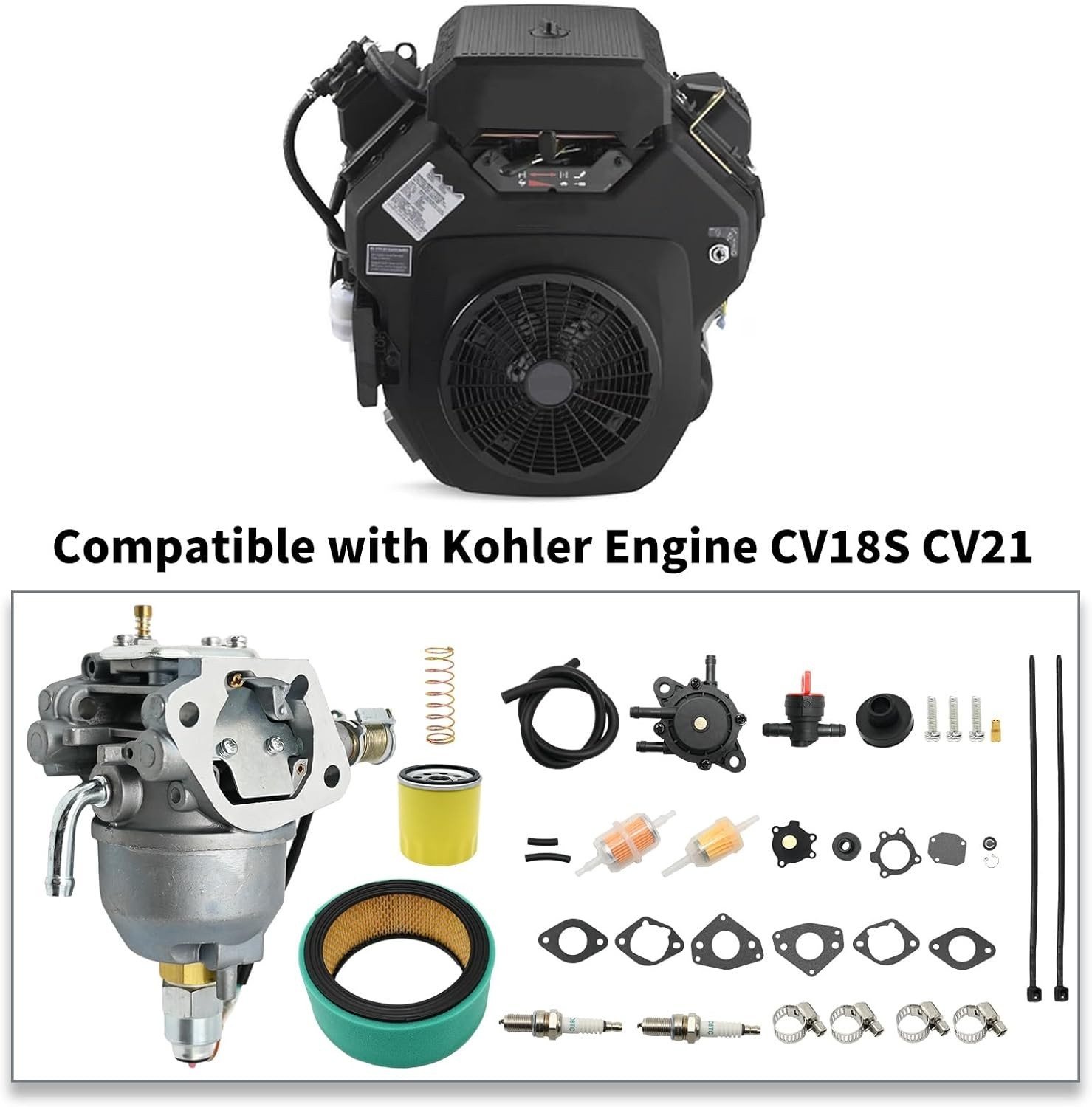 [Replace Part Number]: 24-853-09, 2485309, 24 853 09, 24-853-19, 2485319, 24 853 19, 24-853-19-S, 2485319S, 24-853-25-S, 2485325S, 24-053-25, 2405325, 24 053 50-S, 24-053-50-S, 2405350-S. [Fitment]: Replacement for Kohler CV18 CV20 CV22 CV620 CV640 CV624, etc. command pro twin cylinder engines. [Package Includes]: Carburetor, fuel line, gasket, air filter, fuel pump, oil filter and other accessories as shown in the picture. [Improve performance]: Carburetor can solve the problems of internal rust, component damage, lack of power, insufficient fuel combustion, etc. It can be adapted to different environmental conditions and driving needs, provide the right fuel mixing ratio, and improve combustion efficiency and engine performance. [Note]: Please check the details and product description before purchasing to make sure the part is suitable.