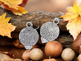 Vintage Boho Round Earrings | 1” Silver Ornate Drop | Retro Statement Jewelry