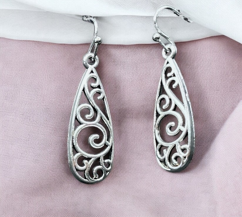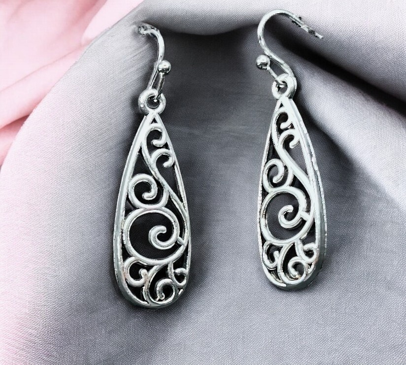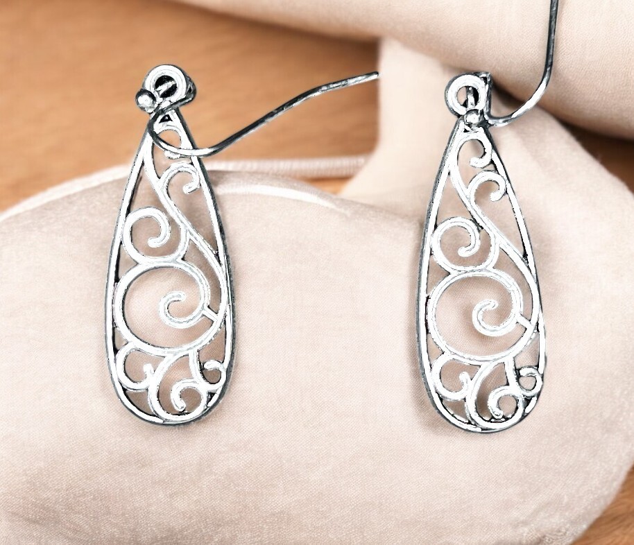 Vintage Boho Silver Dangle Earrings – 1.5" Retro Teardrop Statement Jewelry
