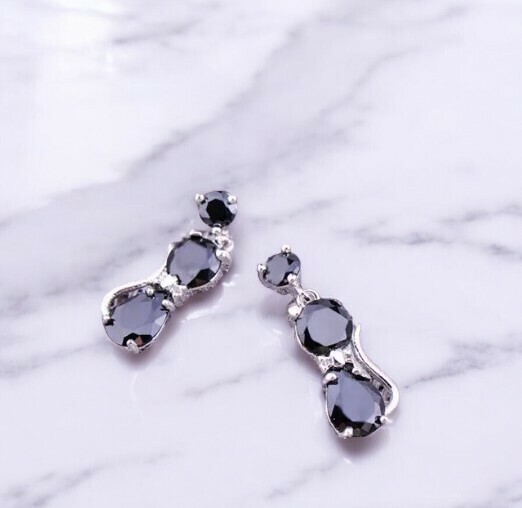 Add a touch of elegance and charm with these black crystal cat stud earrings. Perfect for cat lovers, these adorable earrings feature a sleek kitty design with sparkling black stones that enhance any outfit.