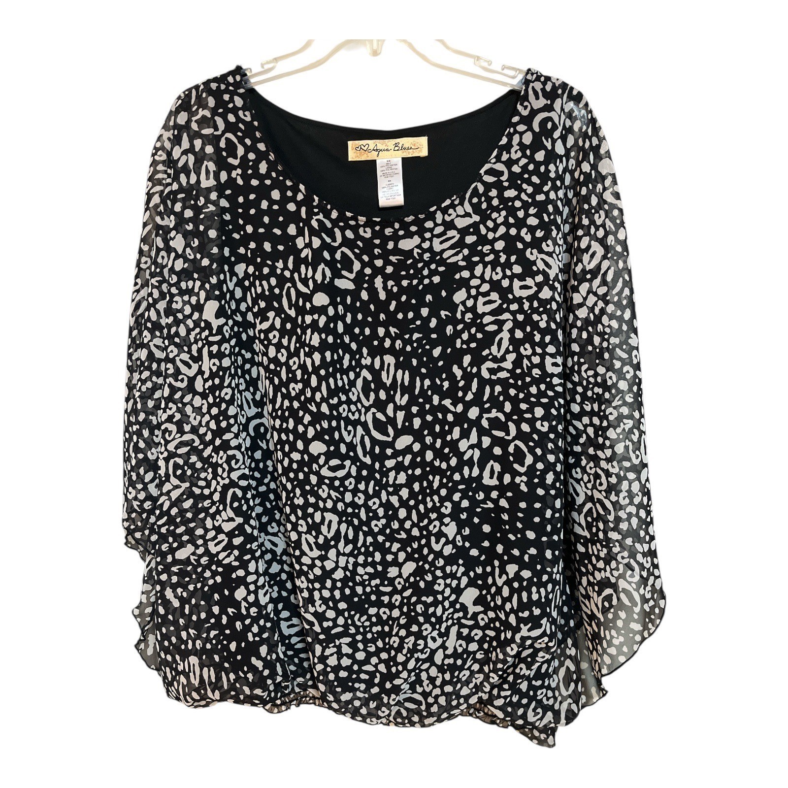 Y2K Aqua Blues Women?s 3X Flutter Sleeve Sheer Overlay Blouse Black White Animal Print Made in USA