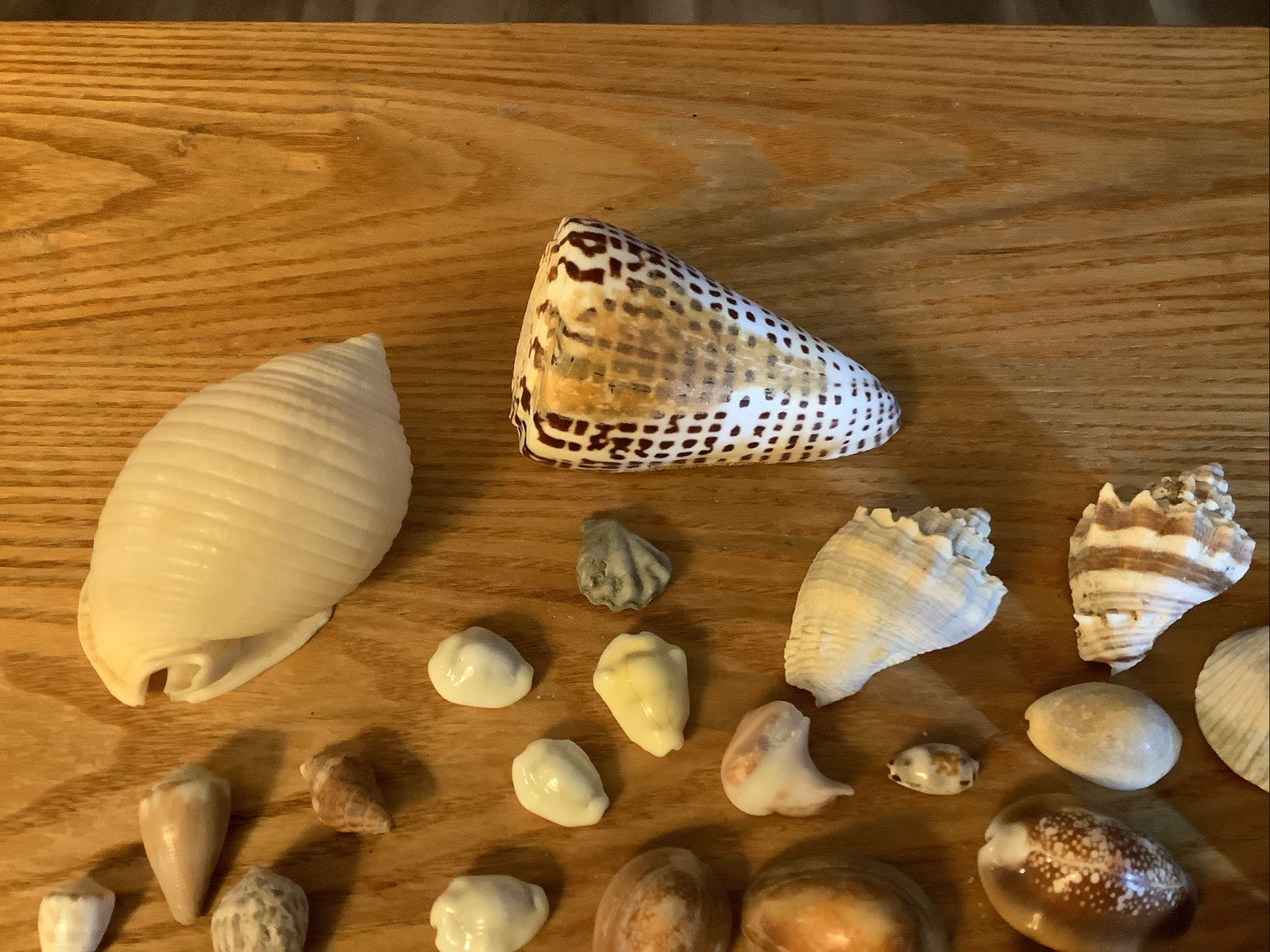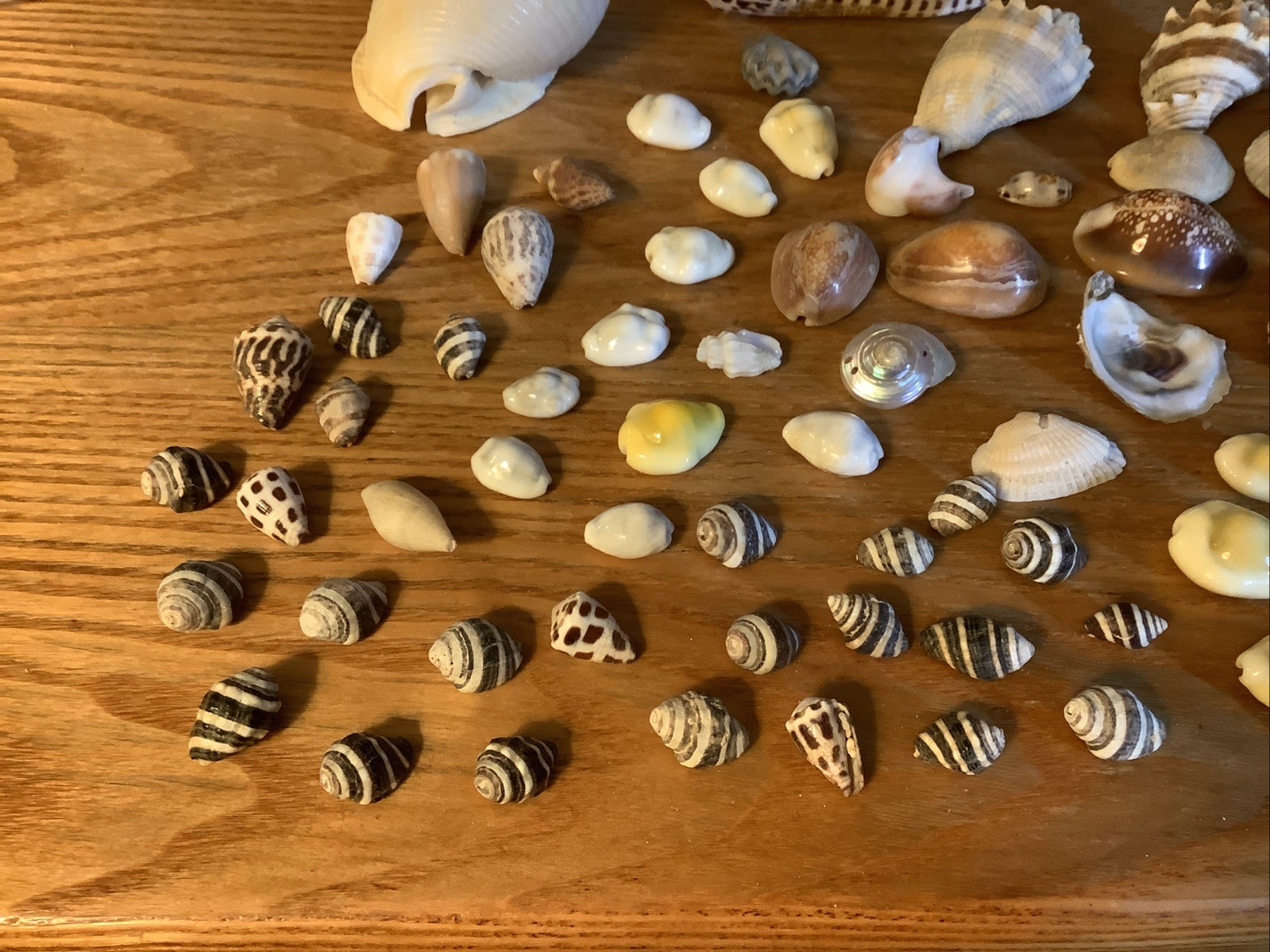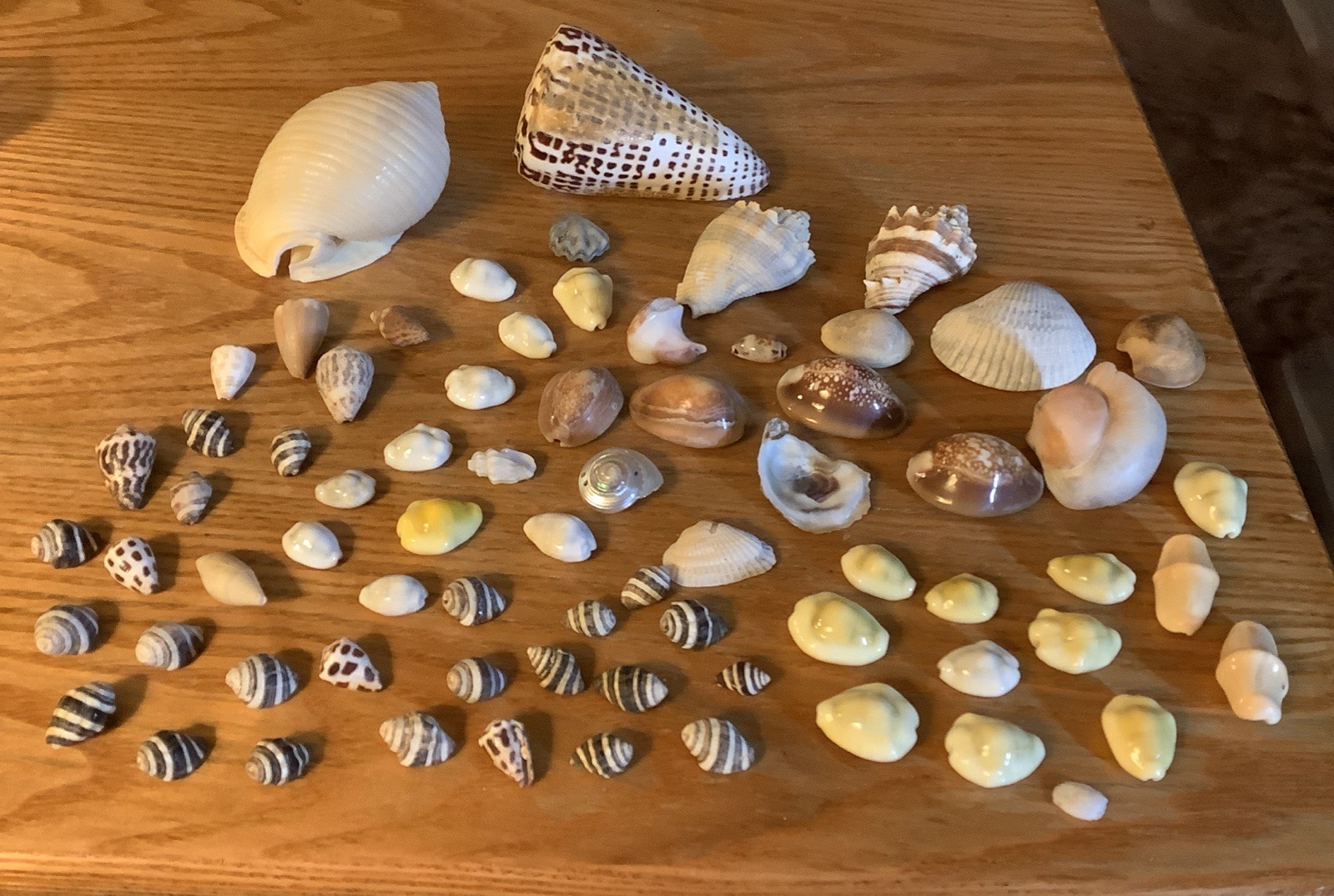 Assortment of various sea shells from small to large. Condition range from fair to very good. The large spotted shell does have something on it that won?t come off. Feel free to email with questions. I do combine shipping on multiple items. Have a great day!