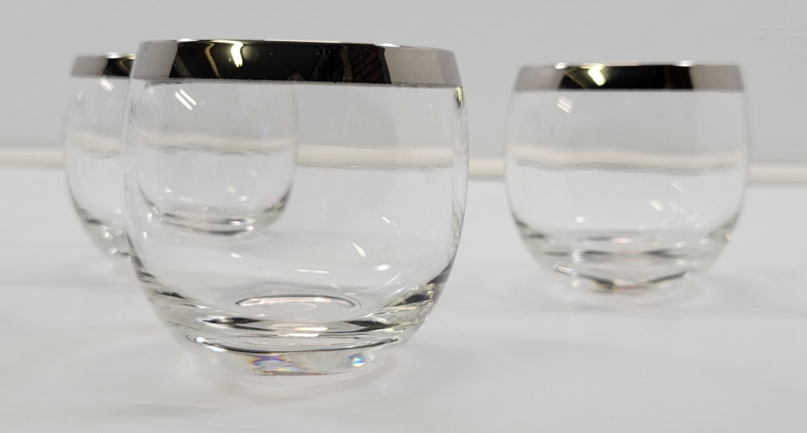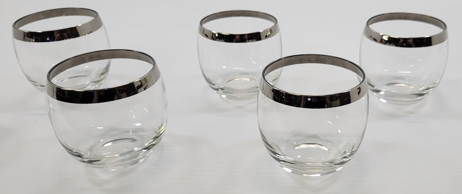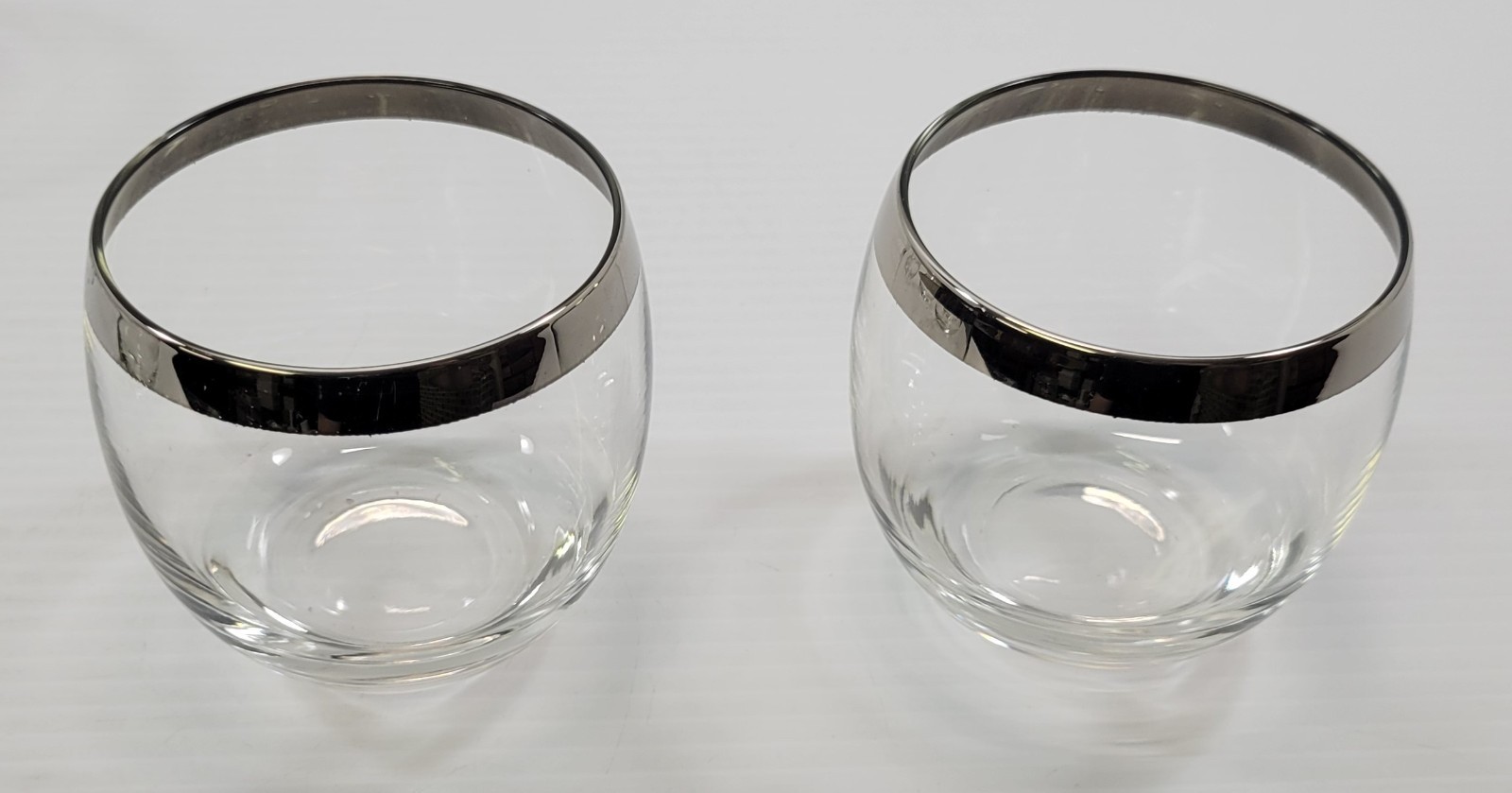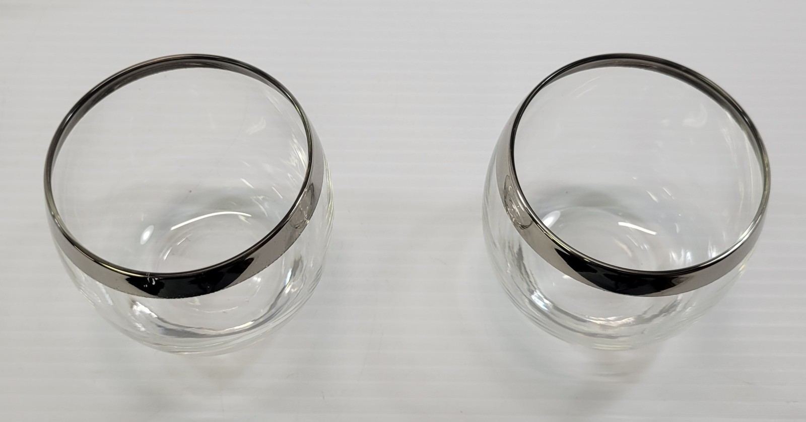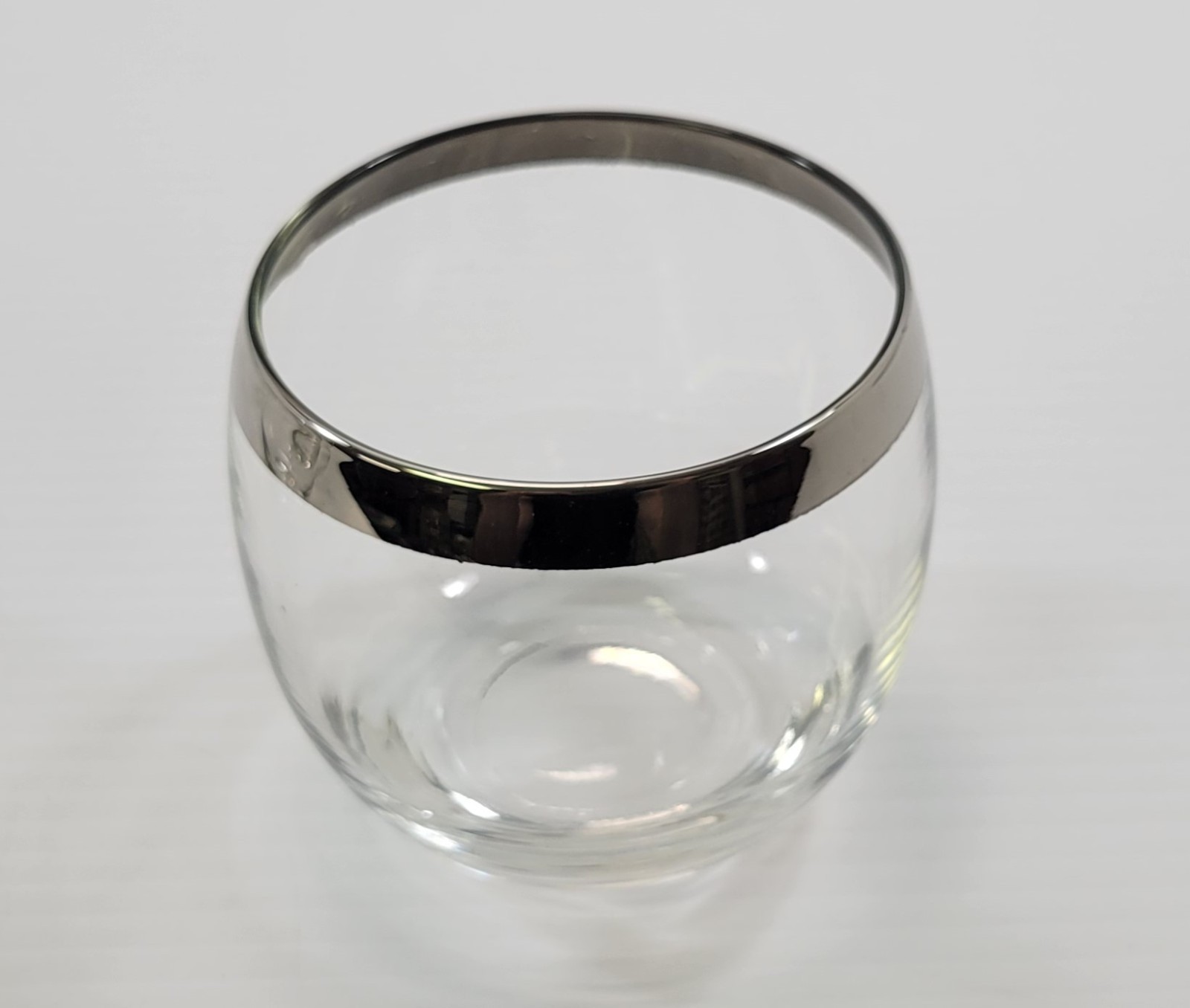 Vintage Roly Poly Silver Tone Rim Cocktail Bar Glasses